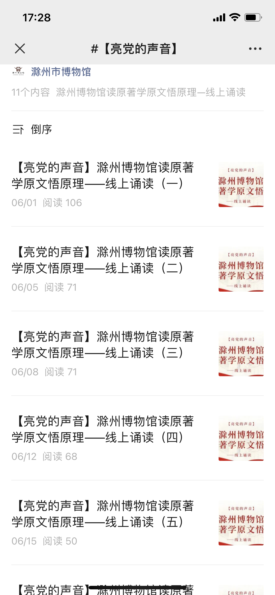 学思践悟铸忠诚。“七一”前后,市博物馆定期推出【亮党的声音】读原著学原文悟原理——线上诵读活动,并组织党员干部围绕“学思想、铸忠诚”开展交流研讨,找准短板弱项,谋细谋实举措,奋力推动党支部高质量发展。