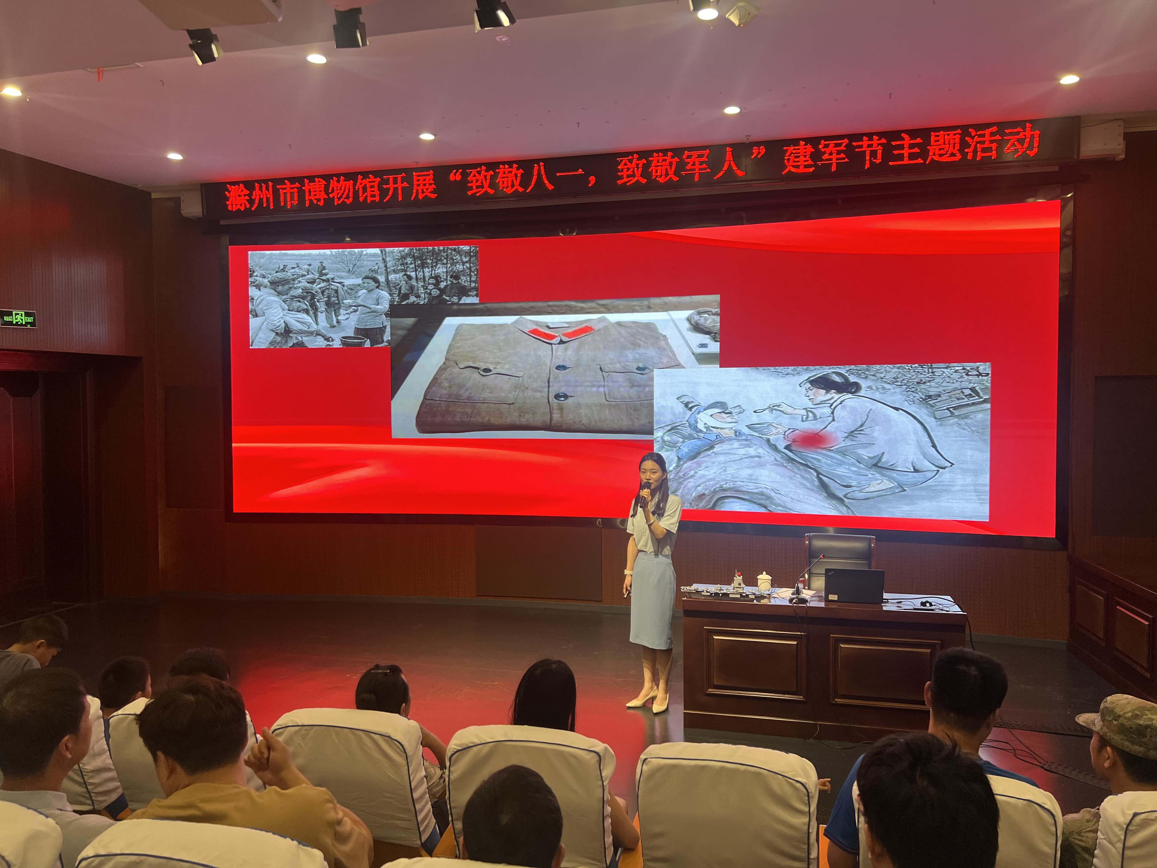 首先,驻滁某部队官兵代表以通俗易懂的语言宣讲了“国防”的含义和重要性,为大家普及了国防知识,教育引导我们增强国防观念,居安思危、奋发图强。随后,必威betway精装版app讲解员结合馆中“红色革命历史”展览内容,进行了《常胜将军罗炳辉—见证戎马生涯的公文包》、《淮海战役的无名英雄—独轮推车》的精彩演讲。在互动环节,参加活动的人员在现场组装了“福建舰”模型,官兵代表也为博物馆的工作人员送上了祝福。最后讲解员带领大家参观必威betway精装版app,感受滁州的自然风光及历史文化。