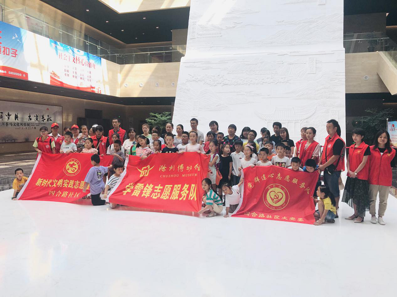 为助推未成年人思想道德教育工作,丰富文化共建社区未成年人暑假生活,加强广大群众对滁州人文历史的认识和了解,2019年8月9日上午,四合路社区新时代文明实践站组织辖区未成年人、家长和志愿者来到滁州博物馆开展新时代未成年人教育实践活动。
