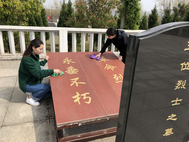 祭奠结束后,党员干部和志愿者拿起扫帚打扫烈士塔及周边的卫生,用抹布擦拭墓碑上的尘土。经过大家的努力,陵园周围被打扫得干干净净,以好的环境迎接将前来祭祀先烈的人们。
