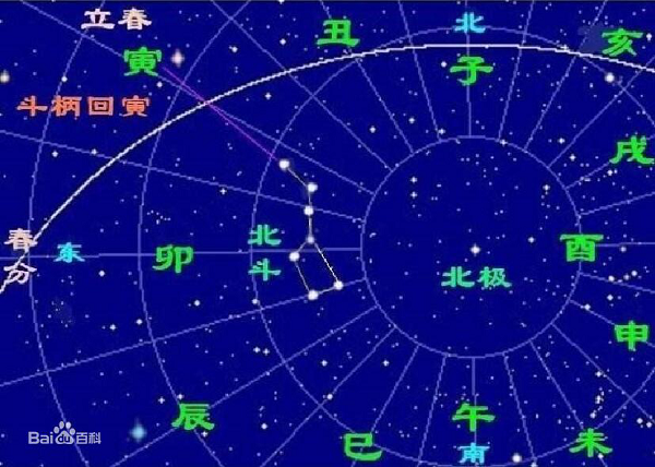 “二十四节气”原以北斗七星斗柄旋转指向确定,北斗七星循环旋转,这斗转星移与廿四节气有着密切关系。在不同的季节和不同的时间,北斗七星会指向不同的方位,也因此成为上古时代人们判断季节、节气变化的依据,即所谓“斗柄指东,天下皆春;斗柄指南,天下皆夏;斗柄指西,天下皆秋;斗柄指北,天下皆冬”的星象规律。当斗柄指向正东偏南的“乙”位时为清明节气。清明这一节气,万物皆洁齐、生气旺盛、吐故纳新、气温升高,大地呈现春和景明之象,正是郊外踏青与墓祭的好时节。