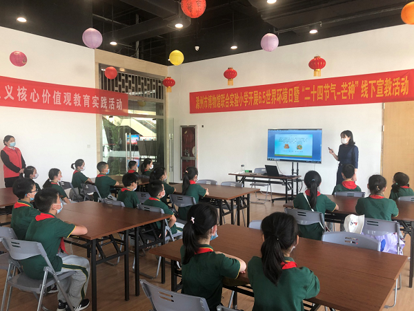 为了提升小学生环保意识以及弘扬传统文化,6月4日必威betway精装版app联合实验小学开展世界环境日暨“二十四节气-芒种”宣教活动 。在活动中讲解员小叶老师向同学们科普了世界环境日以及芒种的小知识,并带领同学们画创意画。