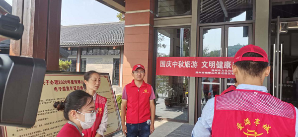 在国庆、中秋两节即将来临之际,为了宣传文明旅游健康出行的理念,促进游客养成文明旅游行为,增强防疫意识。9月28日上午,滁州市文旅局、琅琊山风景区管委会、琅琊山古道社区、南谯区徐岗社区在琅琊山风景区,开展“假日文明旅游志愿宣传服务活动”。