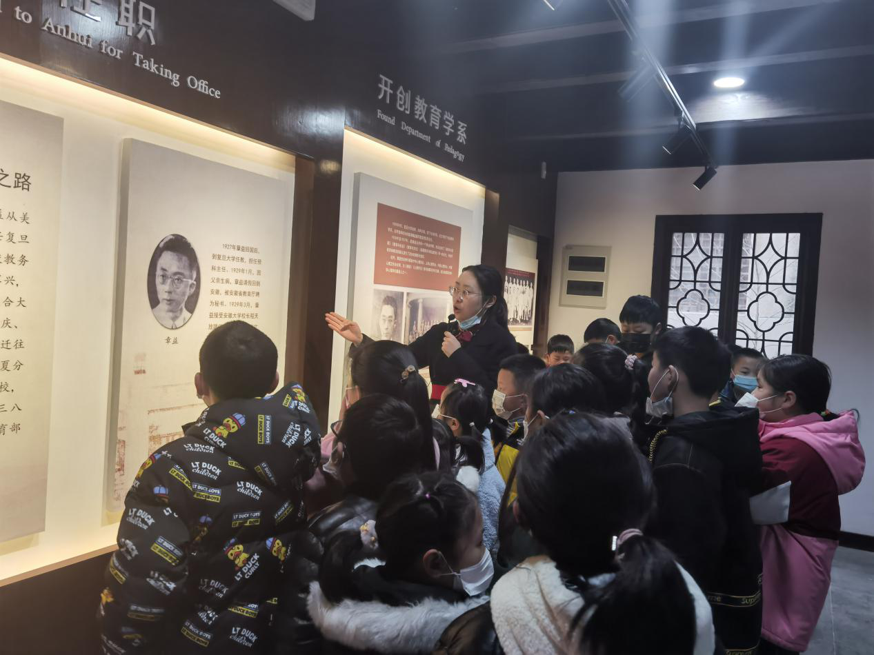在工作人员的引领下,同学们有序地步入了章益故居的展厅。讲解员为同学们生动细致地讲述了章益的求学经历以及护校拒迁的感人故事。