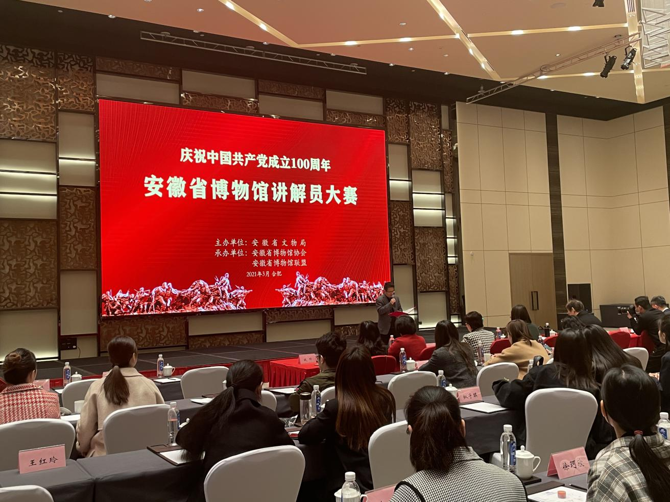 为庆祝中国共产党建党100周年,引导和鼓励全省博物馆讲解员更好地讲好中国故事,讲好中国共产党故事,唱响红色主旋律,全面展现近年来安徽博物馆专业讲解员的文化素养和精神风貌,3月23至25日,由安徽省文物局主办,安徽省博物馆联盟、安徽省博物馆协会承办的全省博物馆讲解员大赛在合肥举行。大赛经过层层动员、发动,共遴选出全省85名讲解员参加决赛。