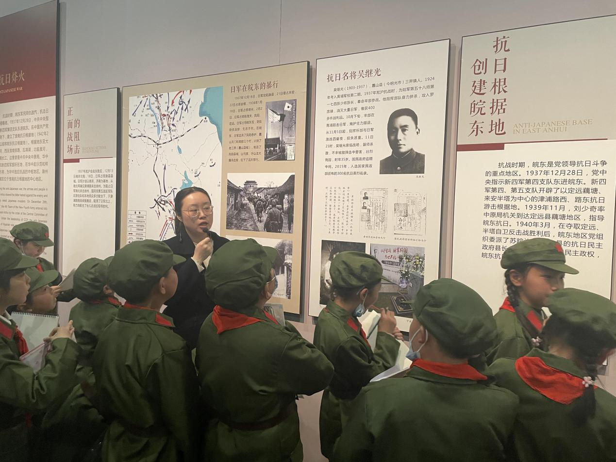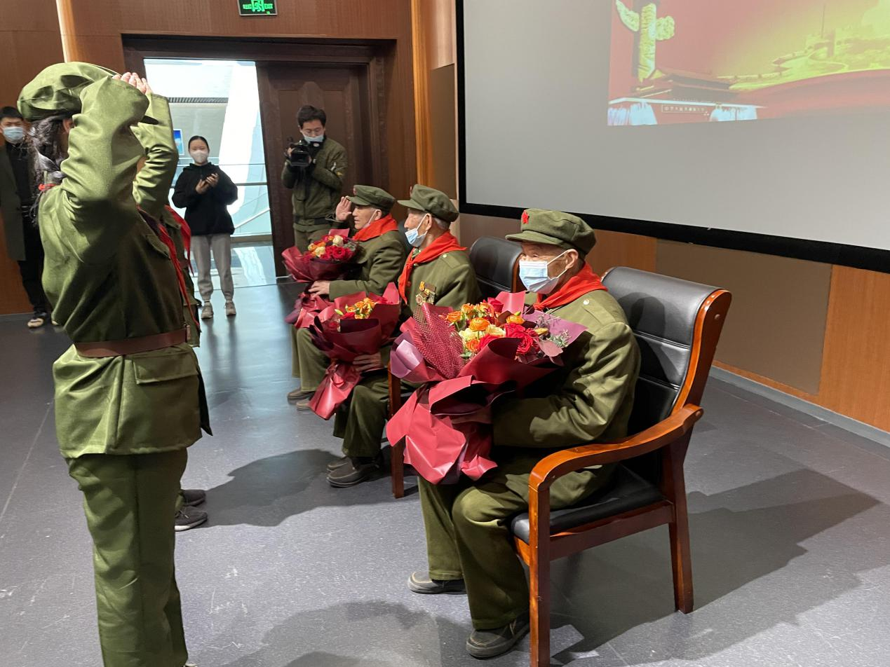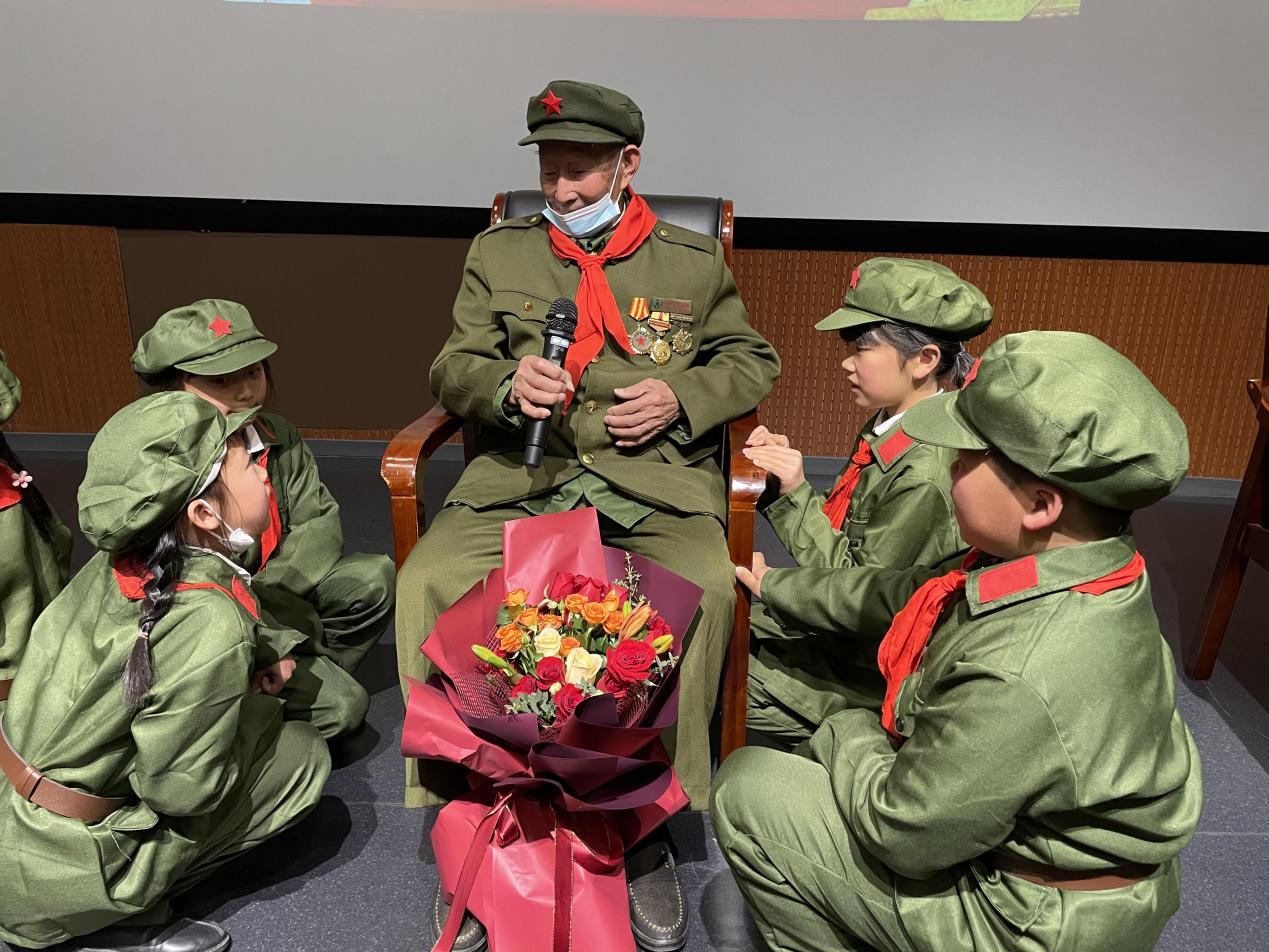 活动一开始,博物馆工作人员组织全体人员在多功能展厅一起唱国歌。随后,少先队员为光荣院的革命英雄系红领巾、敬礼、献花并与老英雄们一起合影、向他们致敬,革命老英雄告诉同学们一定要好好学习,现在不吃学习的苦,以后就要吃生活的苦。活动的第三个环节是观看《纪念中国人民志愿军抗美援朝出国作战70周年大会》,同学们借此也了解到了抗美援朝英雄的故事。最后,在讲解员的带领下,同学们着重参观了博物馆的抗战展厅,他们听得认真,看得仔细,同学们也选择了自己喜爱的馆内场景进行现场作画。