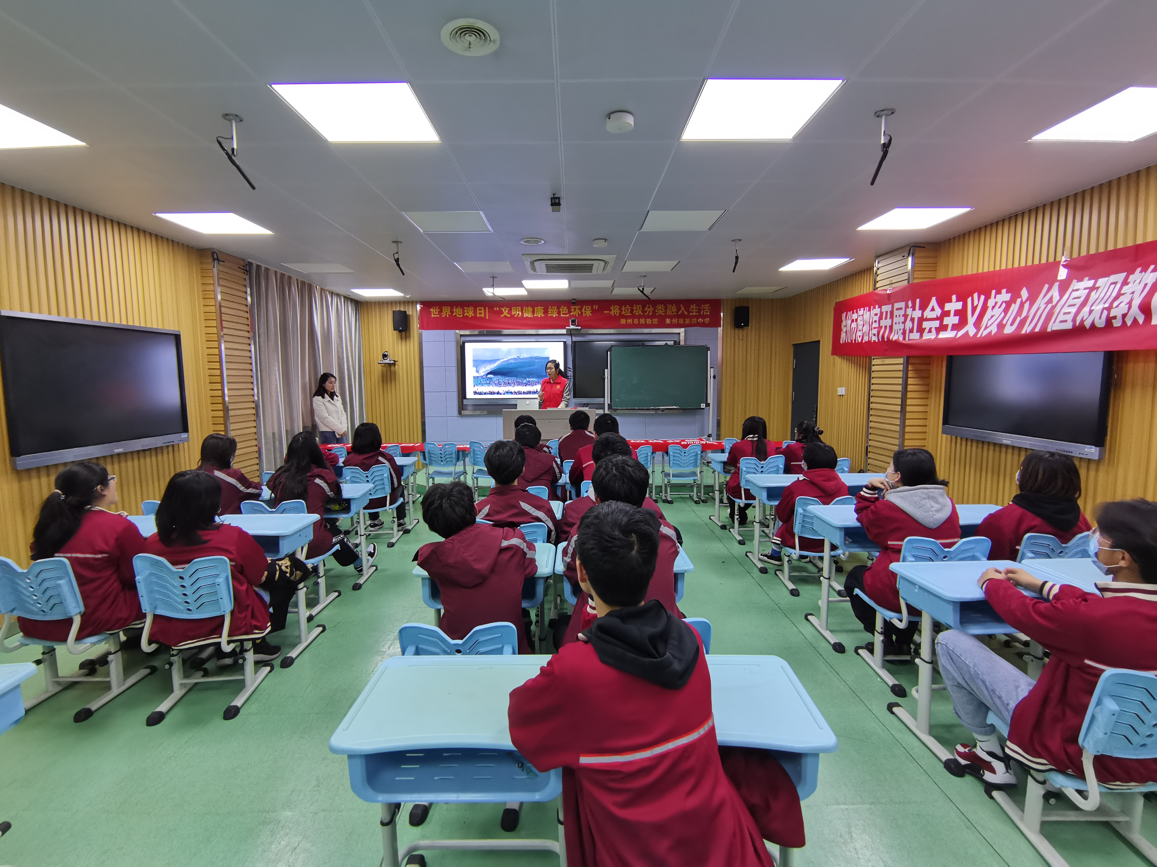讲座中,志愿者老师结合全球温室效应增强、臭氧层被破坏、土地沙漠化、水资源污染严重、海洋生态危机、绿色屏障锐减、物种消失加剧、垃圾威胁人居环境等问题进行科普宣讲,并用图片对比的形式,让学生们感受大自然的美好,也感受了受到破坏后的大自然的满目疮痍。鼓励同学们积极参与垃圾分类、植树造林等活动,做生态文明的实践者和保卫者。