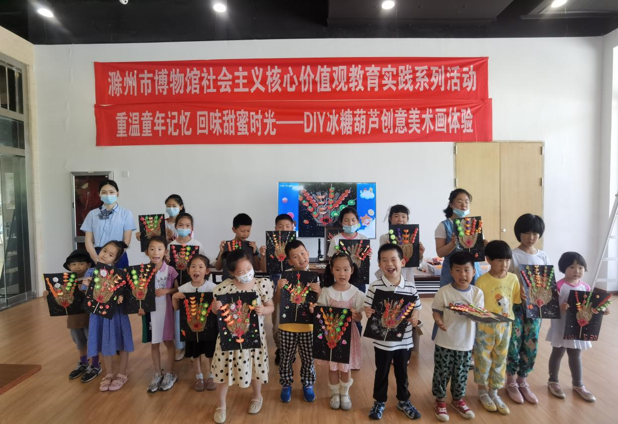 活动九点半正式开始,首先,由博物馆老师讲述“六一”儿童节的由来及其经典故事,从中引出这次的活动主题——“冰糖葫芦”。动手制作“冰糖葫芦”创意美术画前,老师给大家讲述了南宋光宗皇帝的一位贵妃吃了冰糖山楂治好疾病的故事,随后老师又给大家展示了现在市面上销售的各种水果冰糖葫芦的制作方法以及如何用黏土制作山楂及各种水果造型。