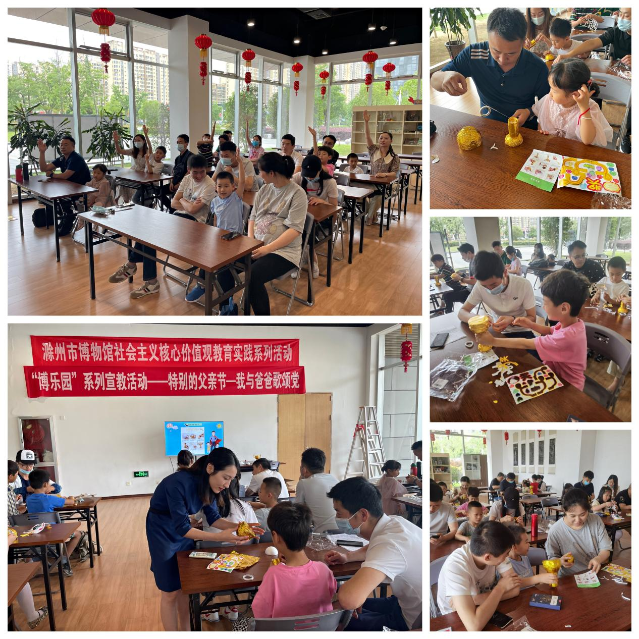 6月19日,必威betway精装版app一楼交流坊开展了“特别的父亲节——我与爸爸歌颂党”父亲节社教活动。
