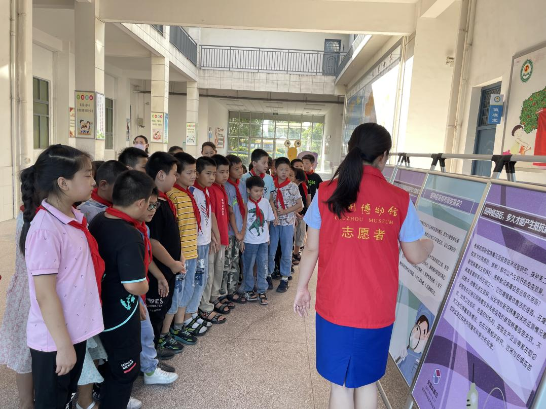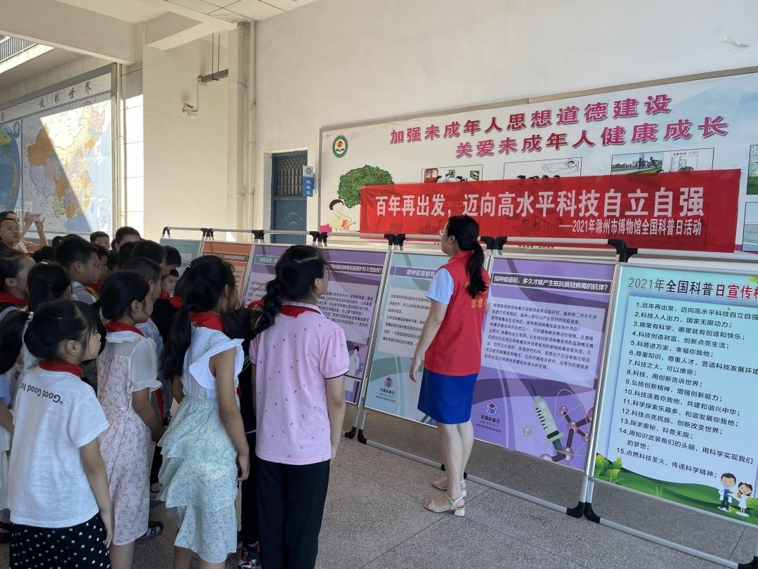 最后讲解员老师带领同学们学习科普知识展板,了解新冠疫苗、科技兴国等科普知识,通过进校园活动,极大地激发了同学们的爱国热情,进一步增强了大家报效祖国的责任感和使命感。