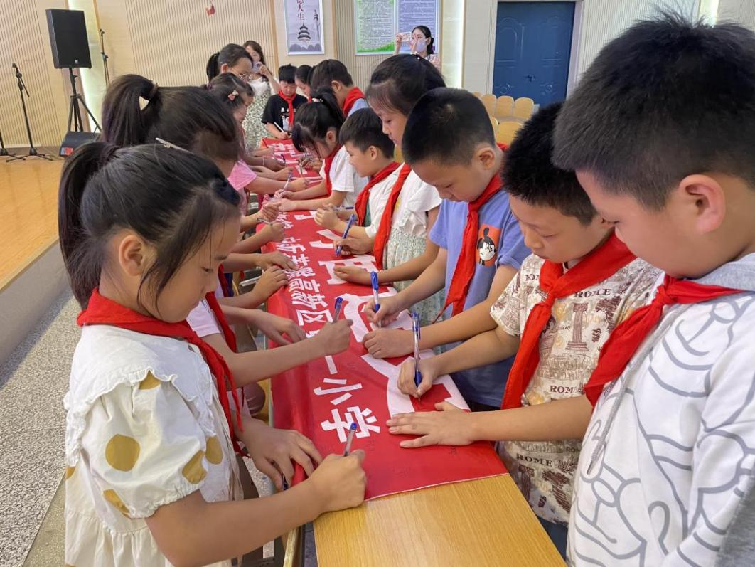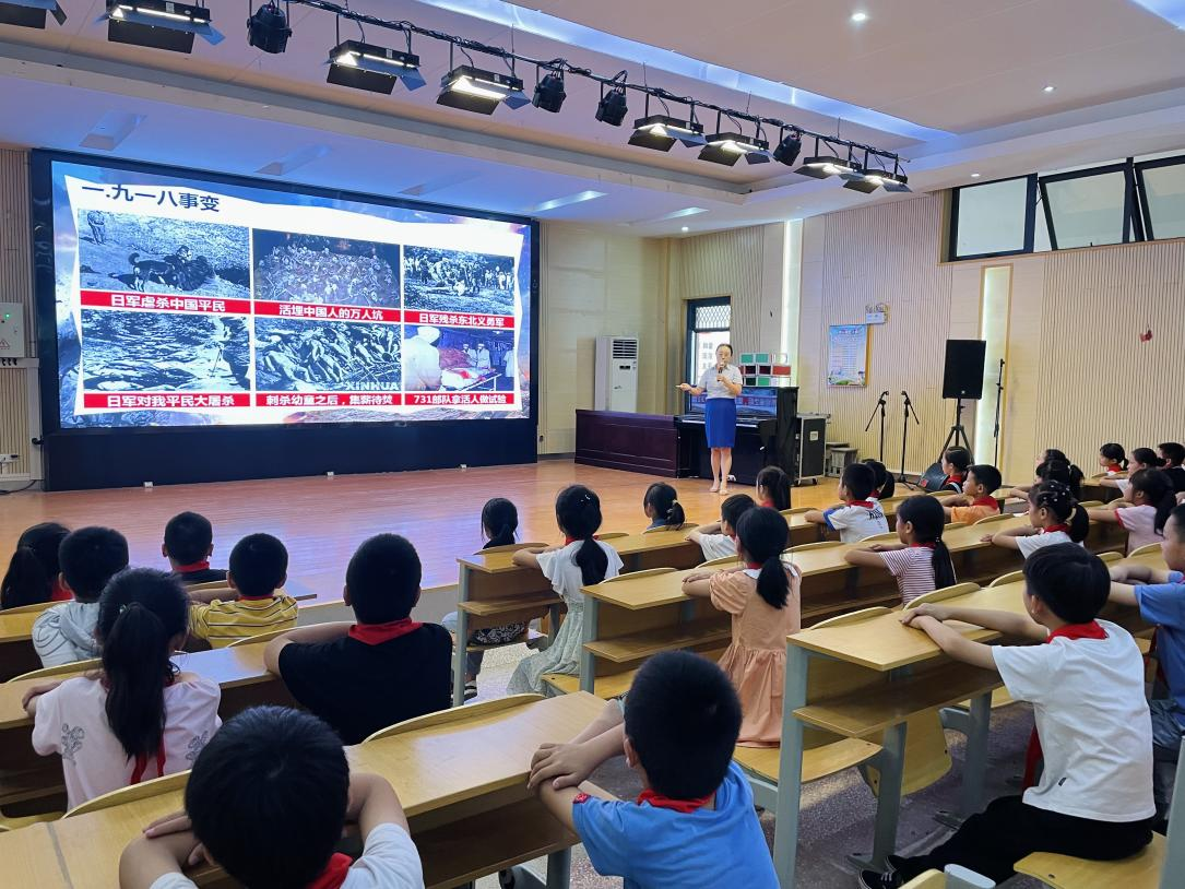活动开始,讲解员老师通过PPT讲述历史、分享革命故事,授课形式图文并茂、生动具体、真实感人,整个课程紧紧围绕“九一八铭记历史”主题展开。孩子们表现出浓厚的爱国热情,课后学生代表们在横幅上签名,承诺铭记历史,永远学党史、强信念、跟党走。
