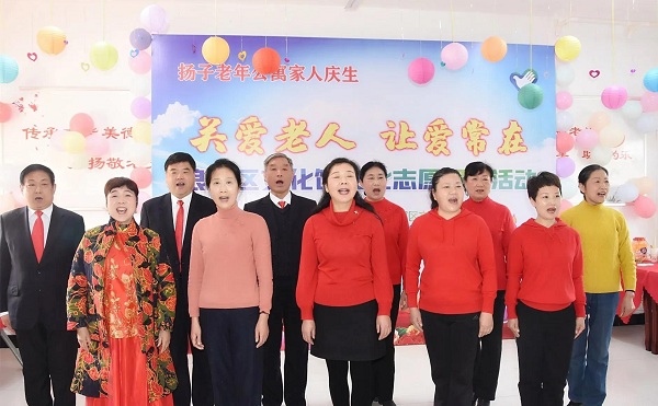 志愿者为老人们带来各色慰问品,还为当月喜过生日的李成柱等老人买来蛋糕,大家点上蜡烛,同唱生日快乐歌曲,献上生日的祝福。志愿者为老人送上了口琴合奏、舞蹈、黄梅戏对唱、葫芦丝合奏、大合唱等精彩纷呈的文艺节目,使老人在生日里享受到社会的关爱、志愿者的祝福。