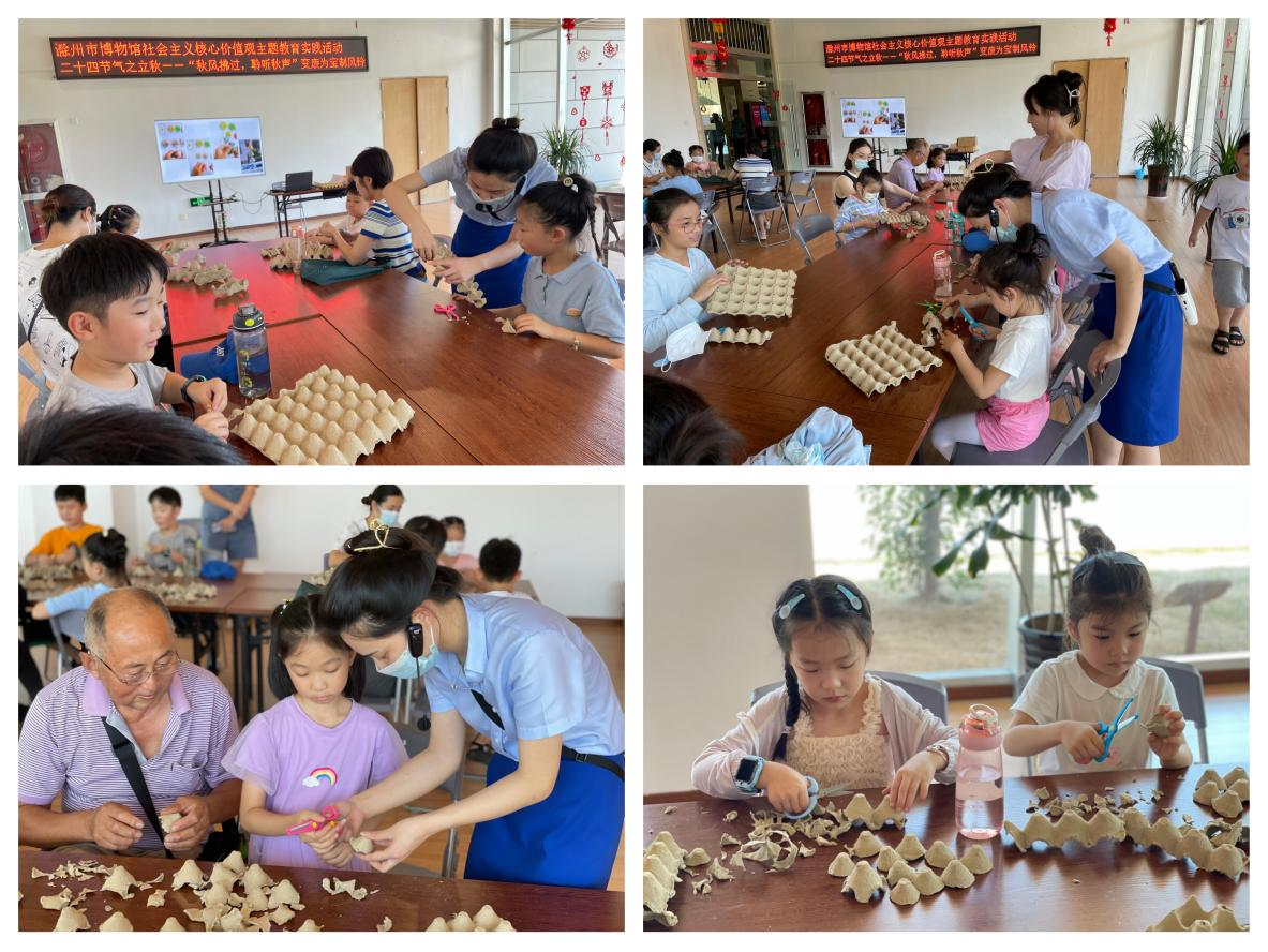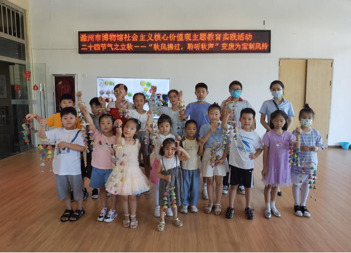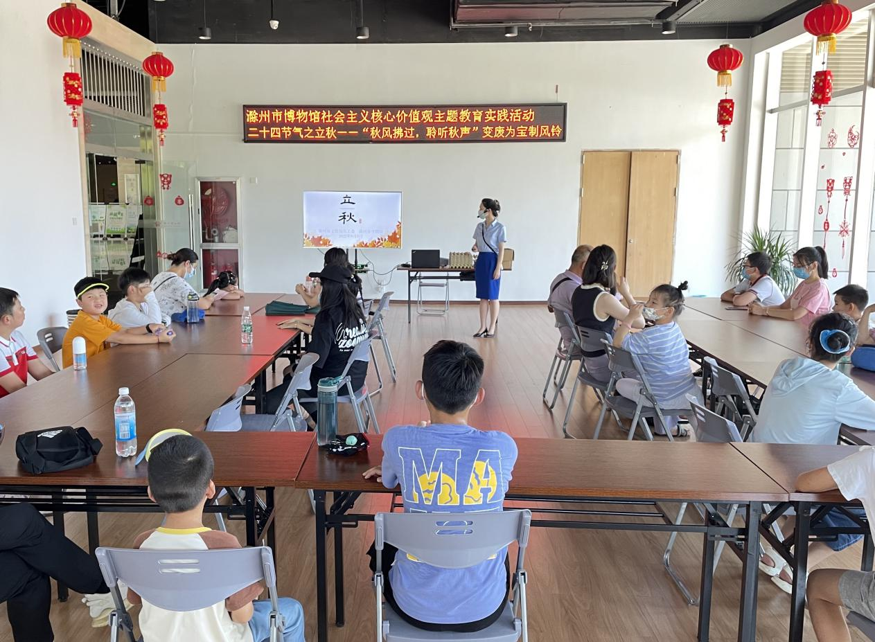 活动开始,讲解员老师先给孩子们介绍了立秋的由来以及习俗,然后带大家了解了变废为宝的重要性,呼吁大家节约资源,保护环境,最后展示了制作风铃的流程。
