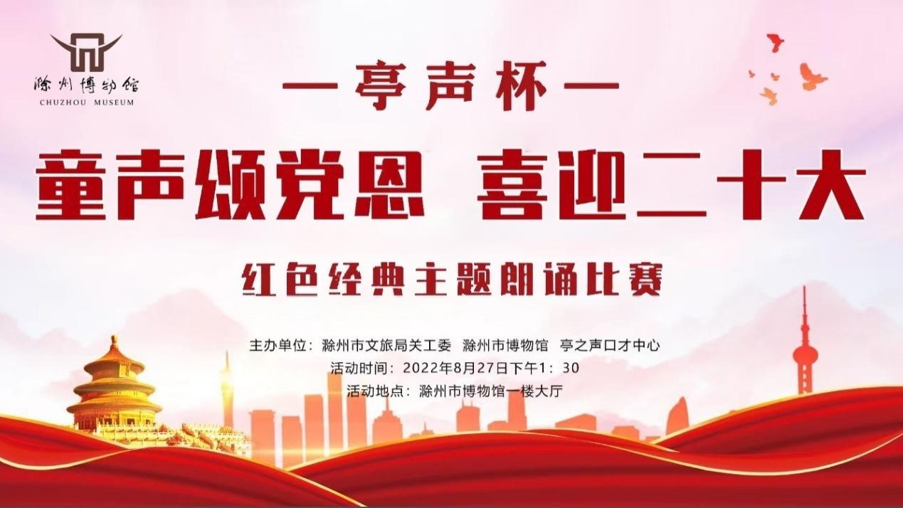 为了迎接党的二十大胜利召开、回顾党的光辉历史,弘扬中华民族优秀传统文化,营造青少年学党史、感党恩、跟党走的浓厚氛围,滁州市文旅局关工委、必威betway精装版app联合“亭之声口才中心”于2022年8月27日下午开展“童声颂党恩 喜迎二十大”红色经典主题朗诵比赛。