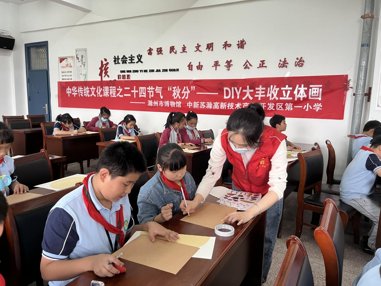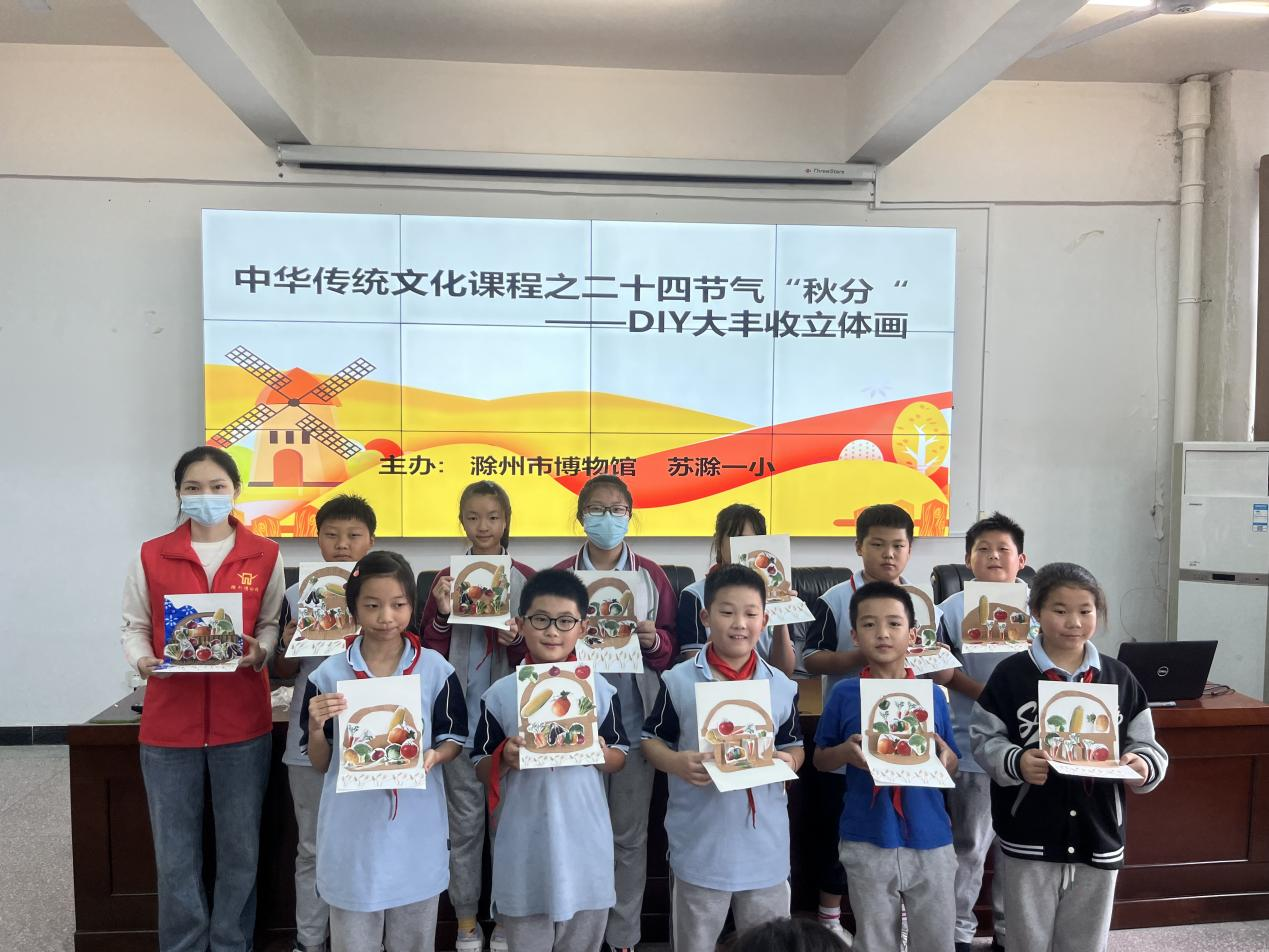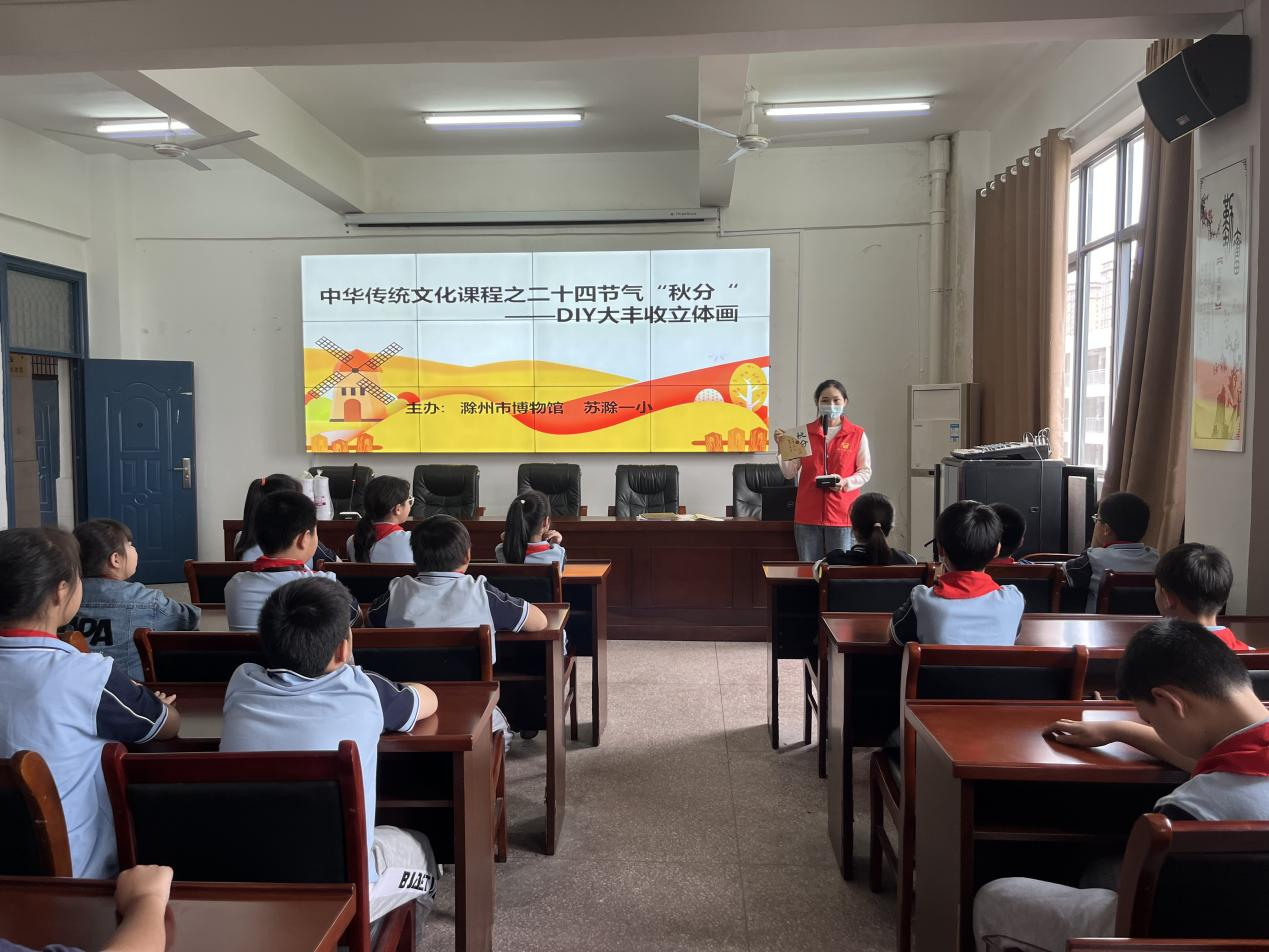 秋分,是二十四节气之第十六个节气,秋季第四个节气。2008年国务院将每年秋分设立为“中国农民丰收节”。为弘扬中华民族优秀传统文化,带领青少年进一步了解中国传统文化和一年四季的物候变化,必威betway精装版app走进中新苏滁高新技术产业开发区第一小学开展平分秋色 丰收大地——DIY大丰收立体画活动。