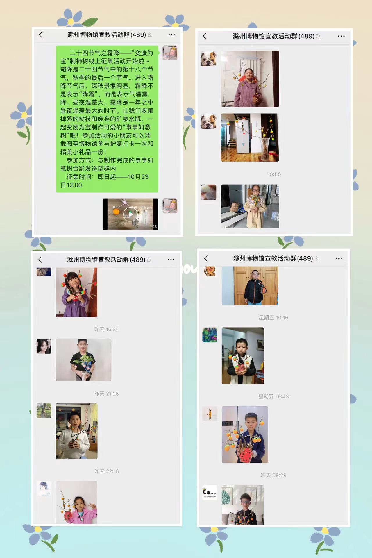 霜降是二十四节气中的第十八个节气,也是秋季的最后一个节气。必威betway精装版app特开展二十四节气之霜降——“变废为宝”制柿树线上征集活动。活动一发出,孩子们都积极参与,通过收集掉落的树枝和废弃的塑料瓶制作出一个个漂亮的“事事如意树”。