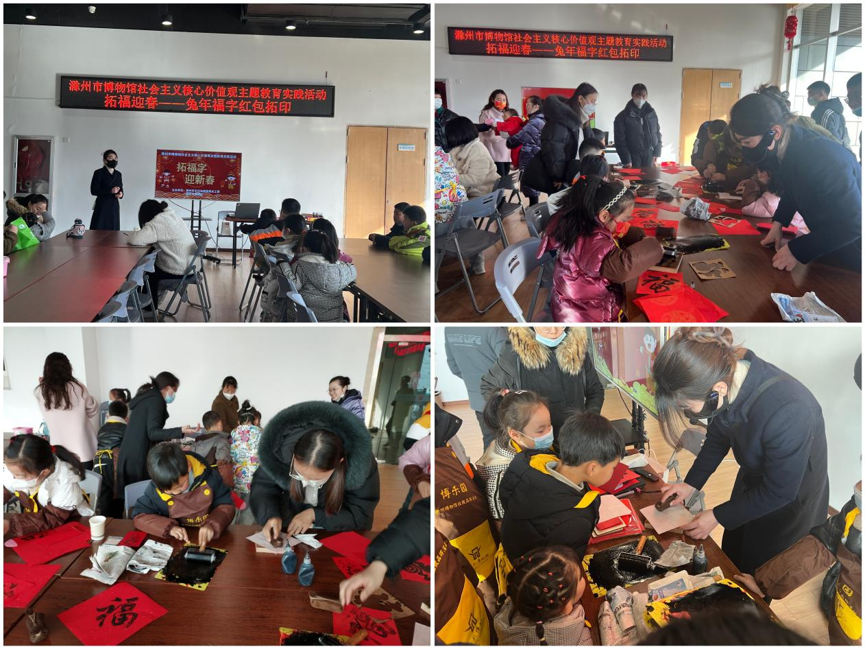 春节是中华民族最重要的传统节日,春节贴福送福是中华民族营造节日气氛的文化传统,寄托了人们对幸福生活的向往,也是对美好未来的祝愿。为进一步弘扬中华民族优秀传统文化,1月18日下午,滁州市文化和旅游局关工委、必威betway精装版app开展了拓福迎春——兔年福字红包木板画拓印活动,用传统文化传递新春祝福,把年味带回家。