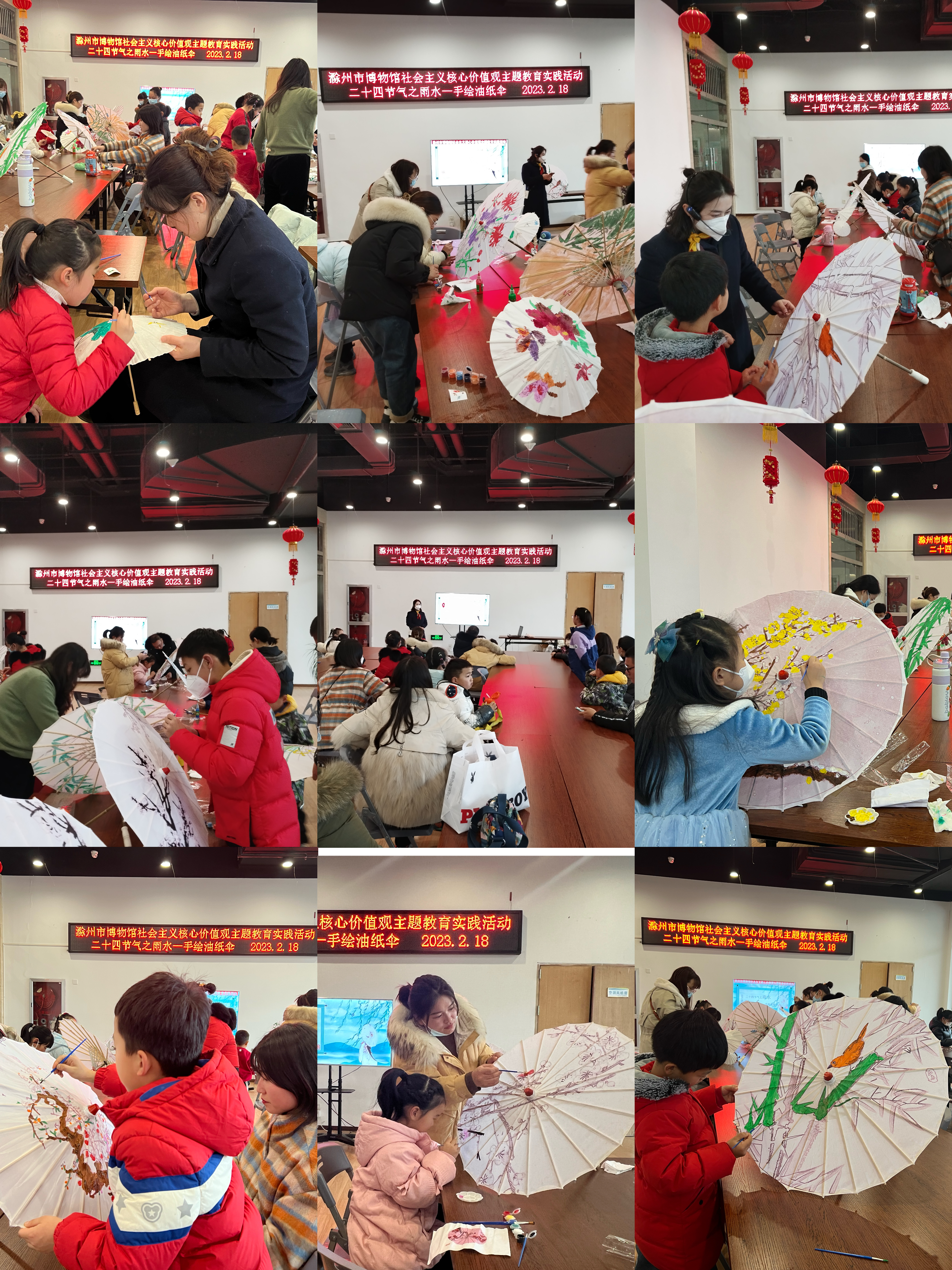 活动开始,讲解员老师给大家介绍了二十四节气雨水的由来以及风俗习惯、文学鉴赏,并介绍了油纸伞的起源、制作方法;随后孩子们开始动手在油纸伞面上创作。有的画了一簇簇风骨傲然的梅花,有的则描绘了一支支清雅俏丽的兰花,水墨浸染,争奇斗艳,带有传统文化元素的油纸伞在孩子们的手里竞相绽放。