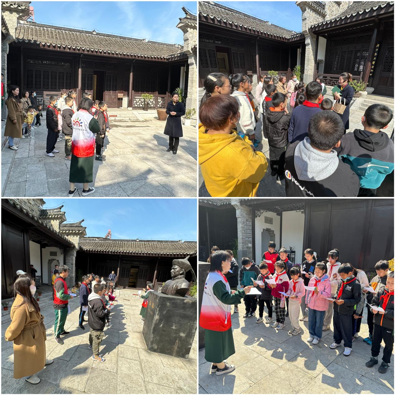 回到瞻丰草堂门口,讲解员老师根据刚才介绍的内容进行了知识互动问答,孩子们积极举手抢答,还获得了纪念小礼品。“堂堂白日去如何,搔首西风客感多”,遵阳社区志愿者为大家讲解吴棠的诗作《堂堂》,并一起朗诵,加深了大家对吴棠的认识。