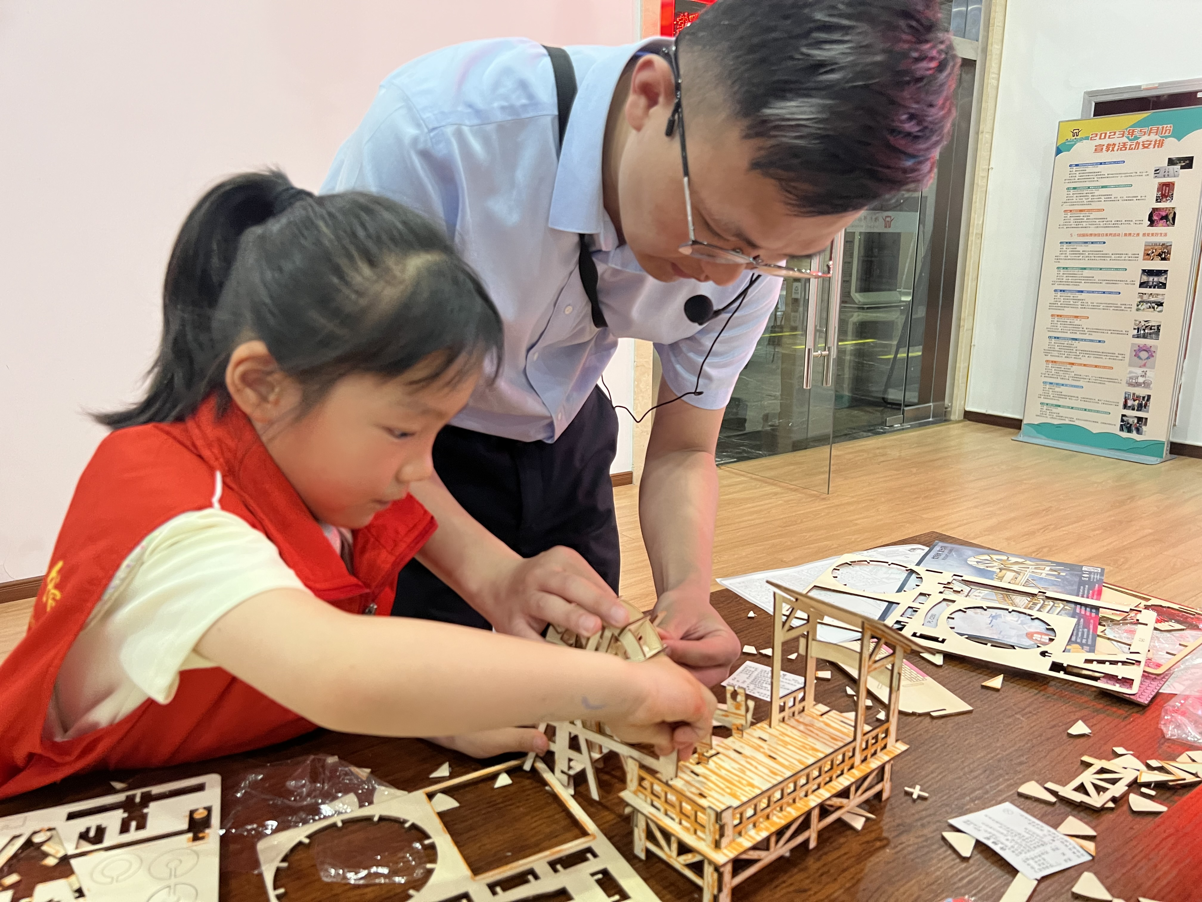 在讲解员老师的指导下,孩子们充分发挥了动手能力和创造力,仔细观察水车拼装图纸,参照组装视频,对水车进行拼接,经过孩子们的不懈努力,一个个精美的水车呈现在大家眼前。