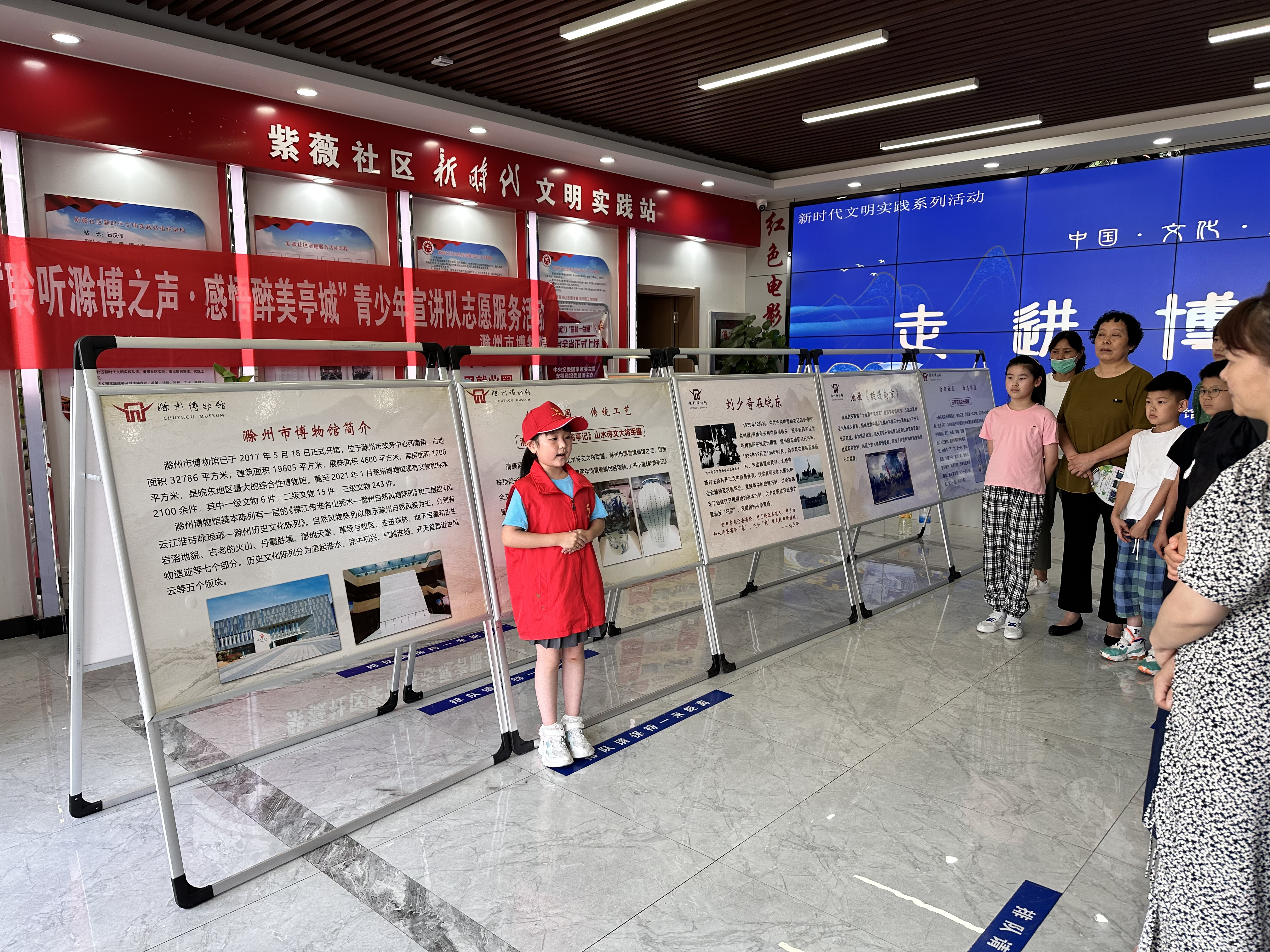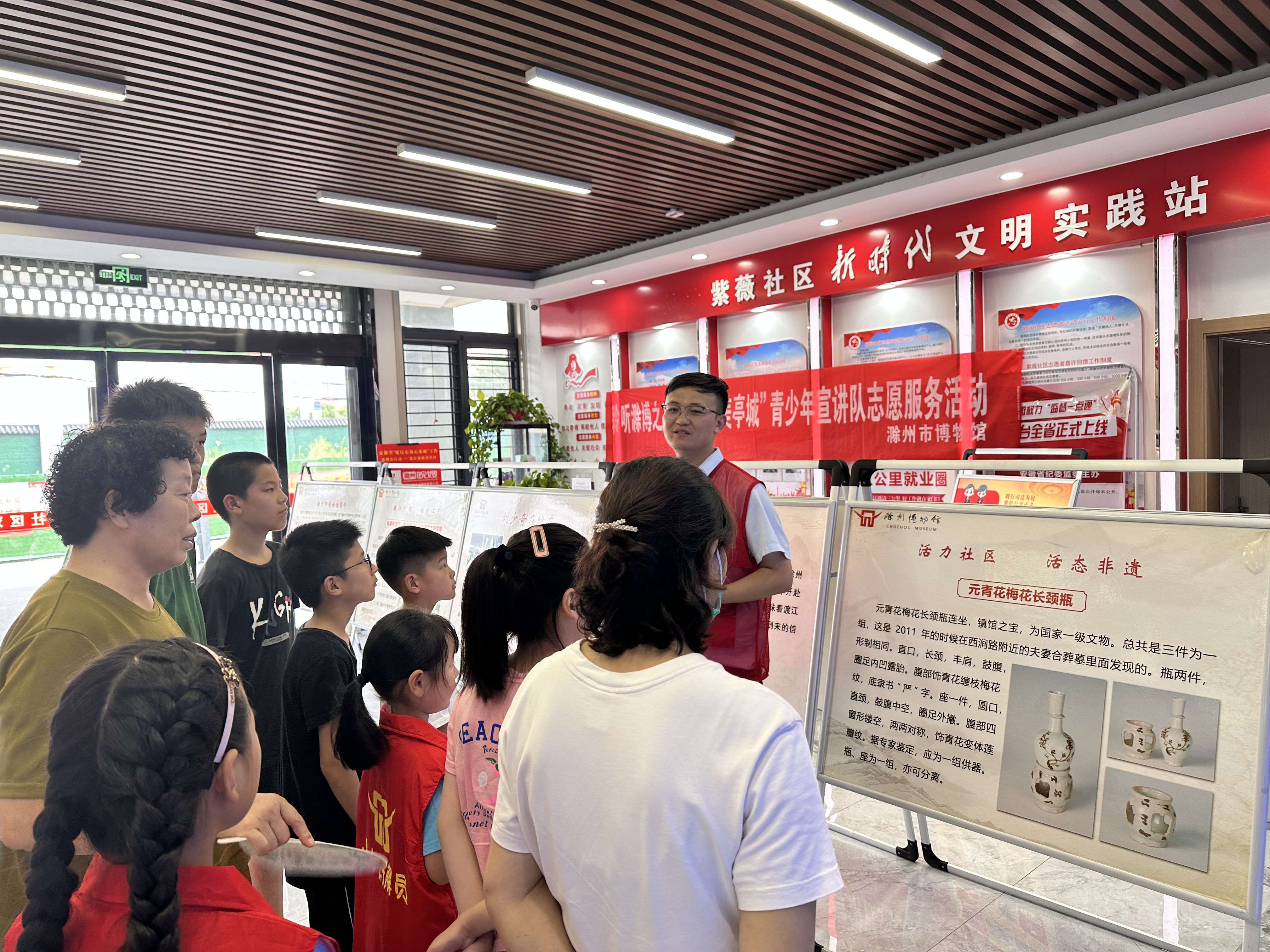 来自必威betway精装版app的“小小讲解员”们带着博物馆文物知识展板向社区群众介绍了博物馆的相关情况和馆藏文物知识,同时也欢迎大家在暑期来到必威betway精装版app观看文物实物,参加博物馆的相关活动,了解更多滁州的历史文化发展。