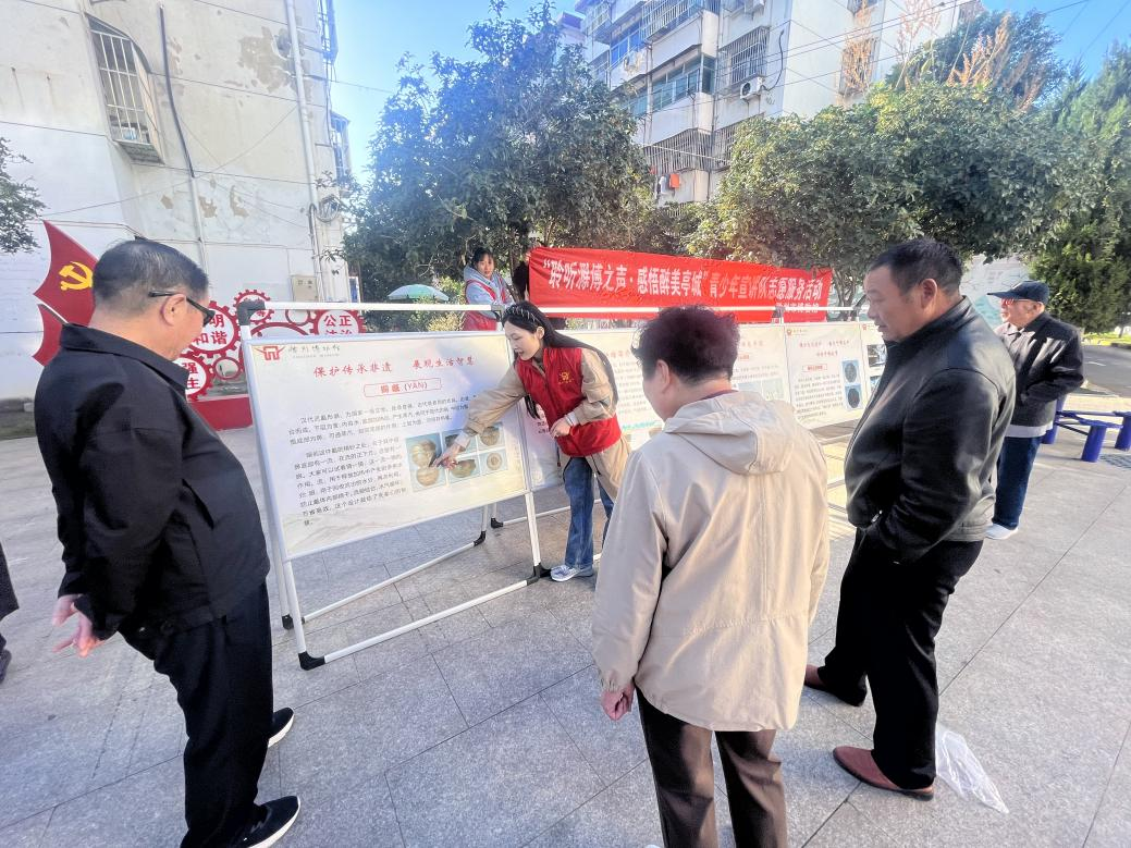 必威betway精装版app青少年志愿宣讲队践行“让文物说话、让历史发声”的重要方式,将博物馆文物知识展板带到社区群众身边,让居民们近距离聆听文物背后的故事。必威betway精装版app党员志愿者们身着红色志愿服,手拿扫帚等清洁工具,开展志愿清洁活动,志愿者以实际行动做表率,带动居民群众爱护保护环境,文明出行。