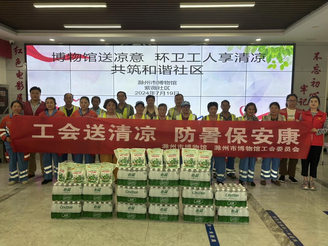 活动现场,必威betway精装版app青少年志愿宣讲队以文物知识展板的形式,给环卫工人们讲述了滁州博物馆的馆藏文物及其背后的故事,并推广了垃圾分类等相关知识宣传。随后,必威betway精装版app工会给环卫工人们送上了矿泉水、凉茶等防暑降温产品。最后志愿者们对小区路面等区域展开垃圾捡拾等清洁服务,营造文明家园的良好氛围。