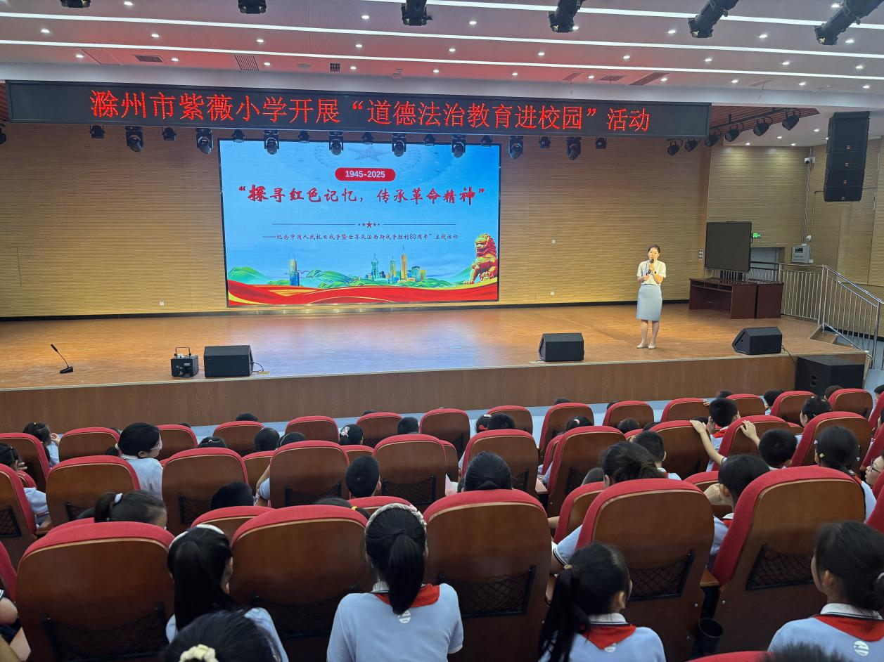 为推动社会科学知识普及、纪念中国人民抗日战争暨世界反法西斯战争胜利 80 周年,传承红色基因,厚植青少年爱国主义情怀,9 月 17 日下午,必威betway精装版app走进滁州市紫薇小学,开展了“探寻红色记忆,传承革命精神”——纪念中国人民抗日战争暨世界反法西斯战争胜利80周年主题活动。