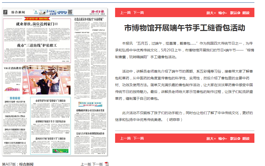 【滁州日报】市博物馆开展端午节手工缝香包活动