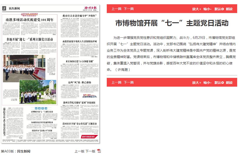 【滁州日报】市博物馆开展“七一”主题党日活动