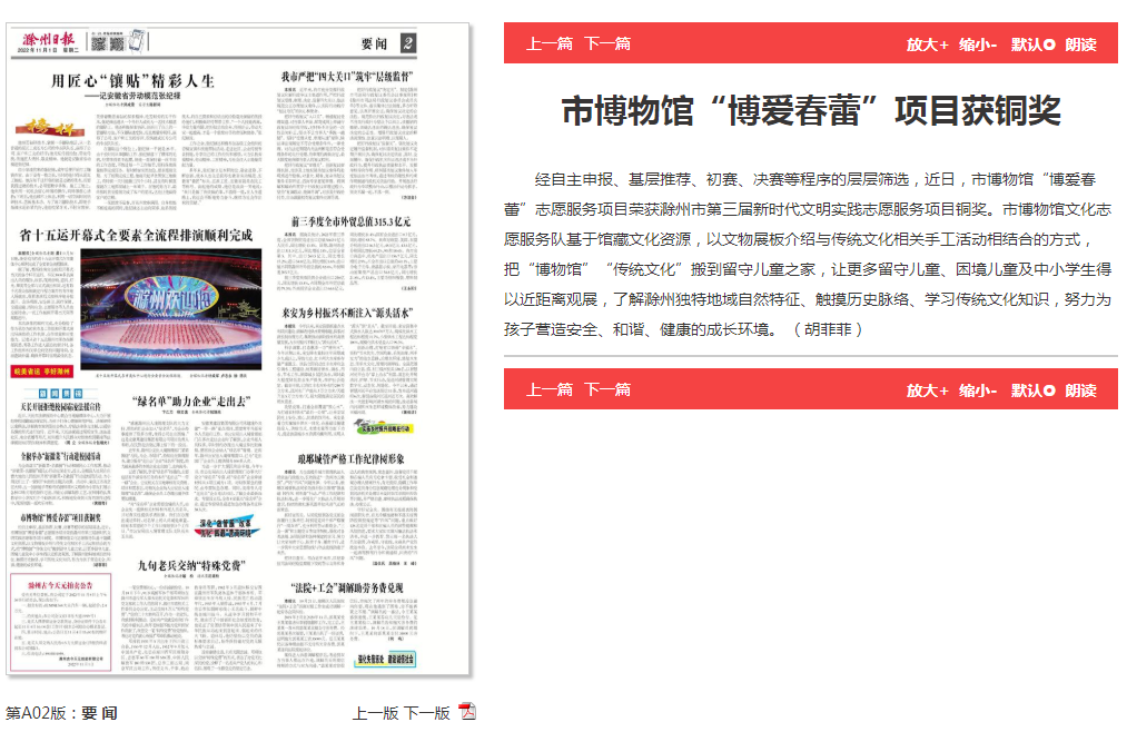 【滁州日报】市博物馆“博爱春蕾”项目获铜奖