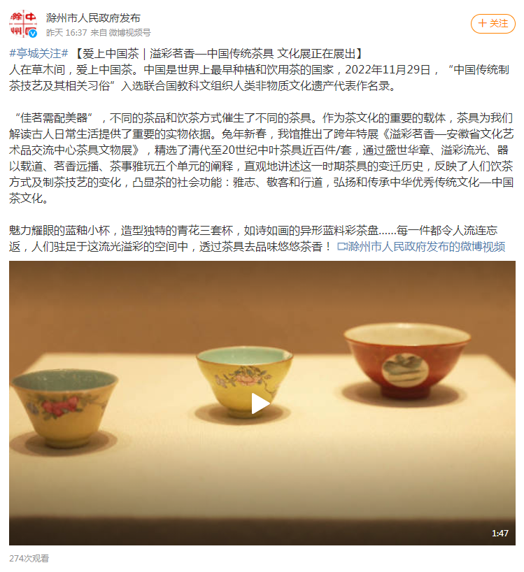 【滁州市人民政府发布】爱上中国茶|溢彩茗香—中国传统茶具 文化展正在展出