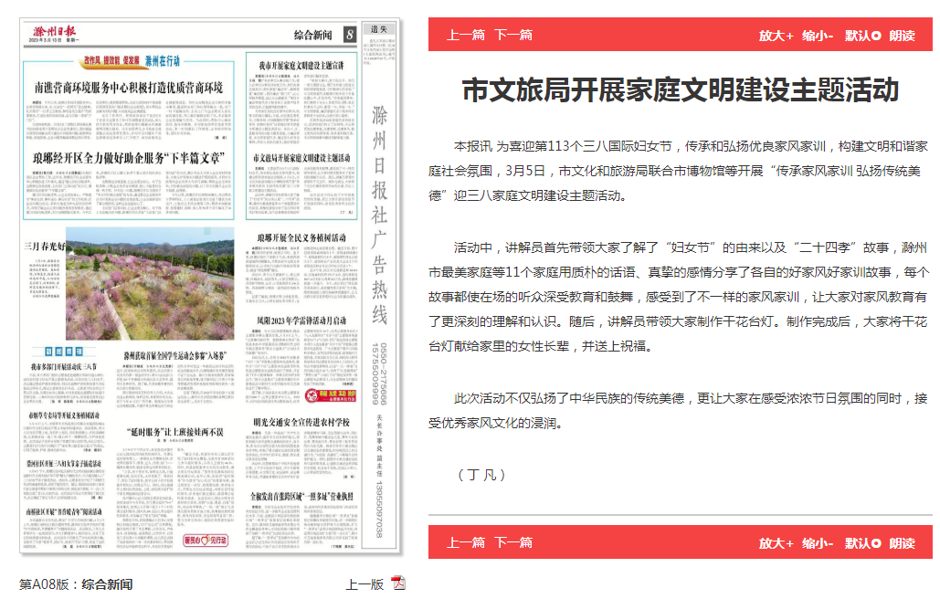 【滁州日报】市文旅局开展家庭文明建设主题活动