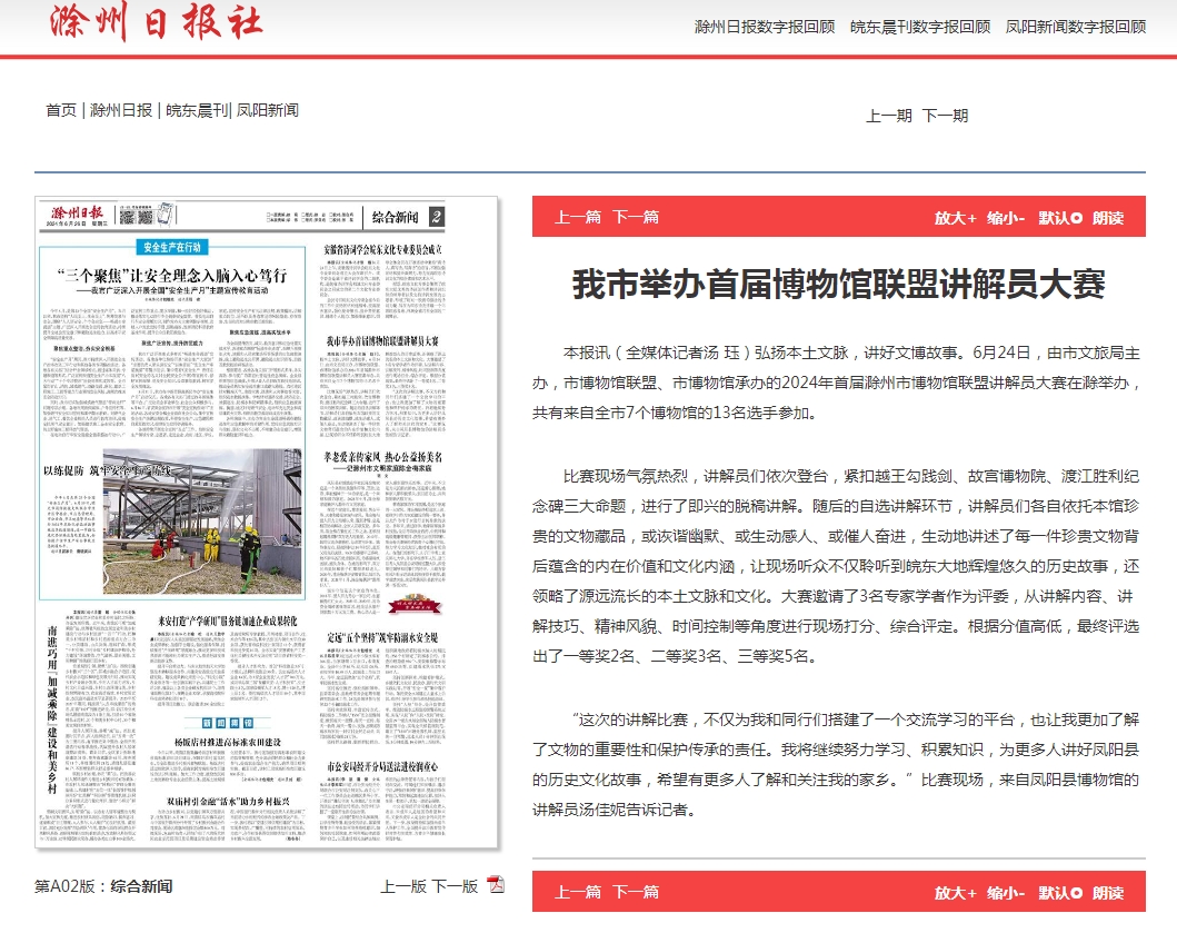 【滁州日报】 我市举办首届博物馆联盟讲解员大赛