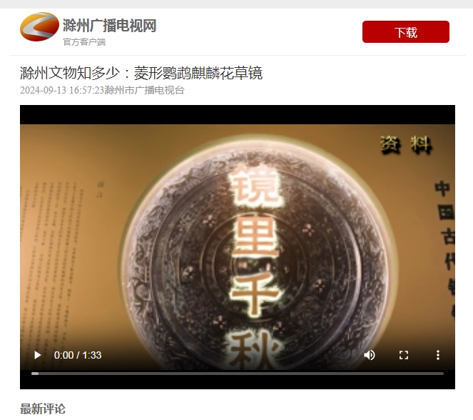 【滁州广播电视网】滁州文物知多少:菱形鹦鹉麒麟花草镜