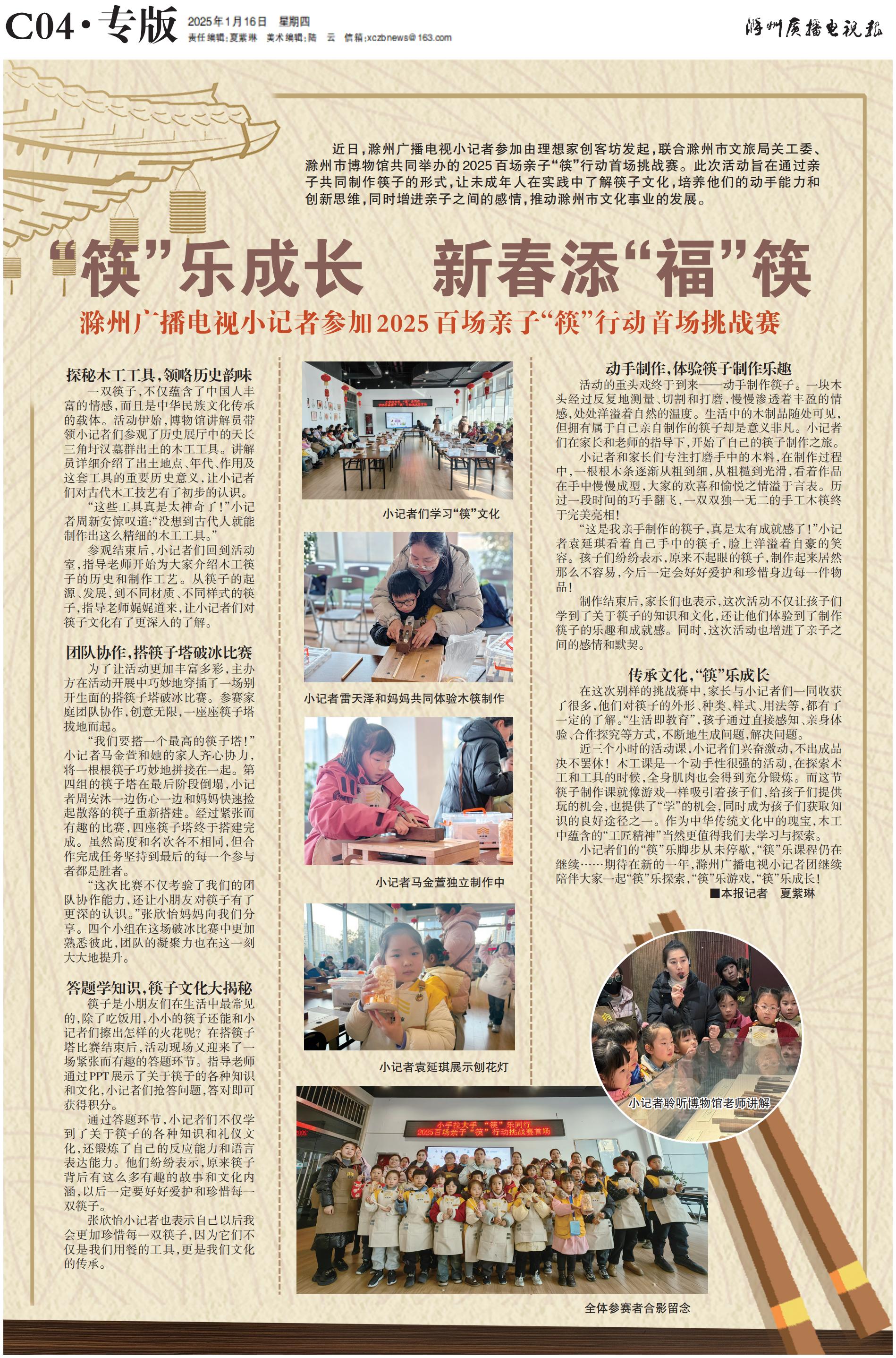 【 滁州广播电视报】 “筷”乐成长新春添福筷 2025百场亲子“筷”行动首场挑战赛 滁州广播电视小记者体验亲子木工课