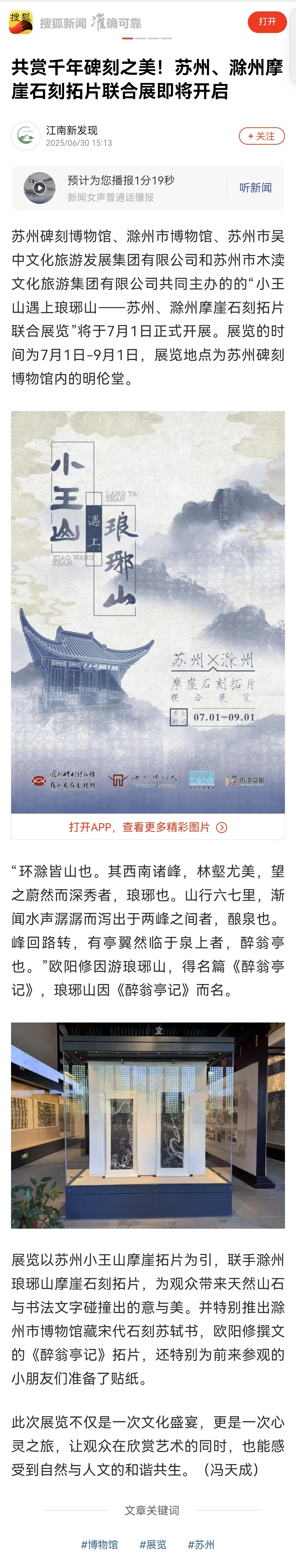 【搜狐新闻】 共赏千年碑刻之美!苏州、滁州摩崖石刻拓片联合展即将开启