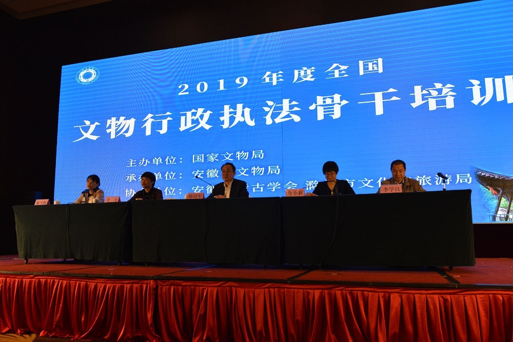 10月21日至25日,由国家文物局主办、安徽省文物局协办、安徽省考古学会和滁州市文化和旅游局承办的“2019年度全国文物行政执法骨干培训班”在滁州举办。来自全国各省、自治区、直辖市以及安徽省各县市区的文物行政执法骨干200余人参加培训。国家文物局督察司司长陈培军、安徽省文化和旅游厅厅长袁华、国家文物局督察司副司长岳志勇、安徽省文物局局长蔡小莉、滁州市常务副市长金力、国家文物局督察司督察处处长施雪梅、国家文物局督察司执法指导处处长郑丽娜、中国文物报社副社长李学良等参加了培训班相关活动。