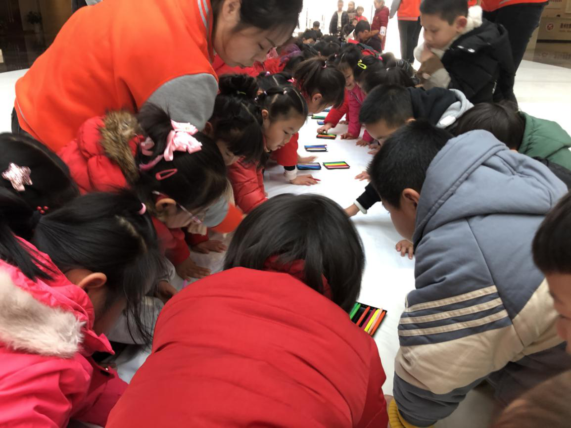 孩子们在百米长卷上作画