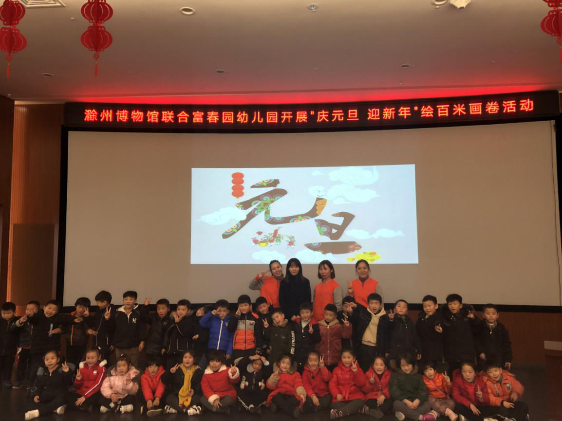 为了迎接元旦的到来,12月27日上午,滁州博物馆联合富春园幼儿园开展“庆元旦·迎新年”百米画卷宣教活动。活动前讲解员带领大家参观了博物馆,了解了滁州山水风物以及滁州古往今来的历史文化,并给孩子们讲了关于元旦的由来和故事。