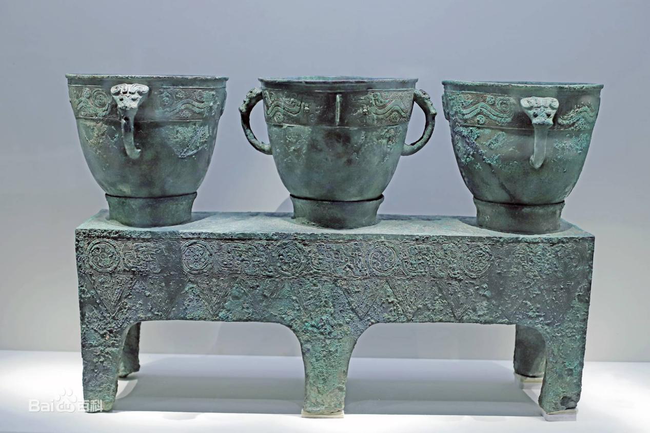 (商代妇好墓出土的三联体青铜甗)