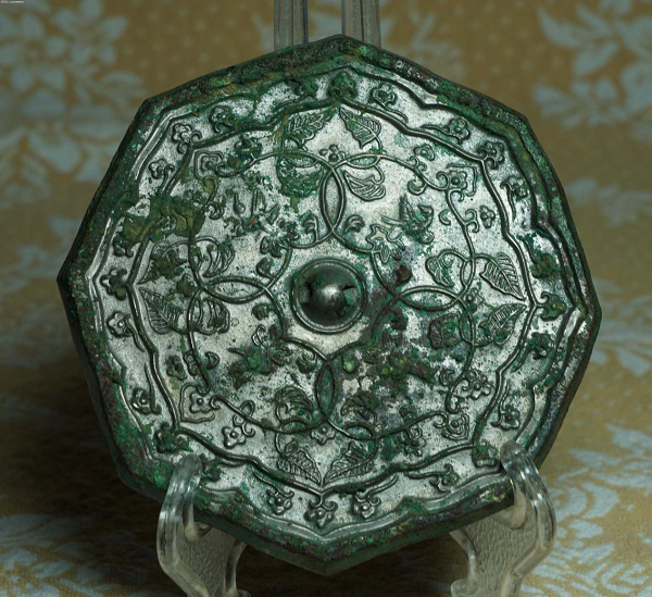 隋唐时期,我国封建文化中的工艺美术达到高峰。经济社会的高度繁荣、开放的对外政策使人们的视野更加开阔。装饰纹样方面,表现以人为本、自由亲切、富有生活情趣的植物花卉纹样逐步确立了其装饰纹样的主体地位,由此缠枝纹被广泛用于工艺美术制品中。