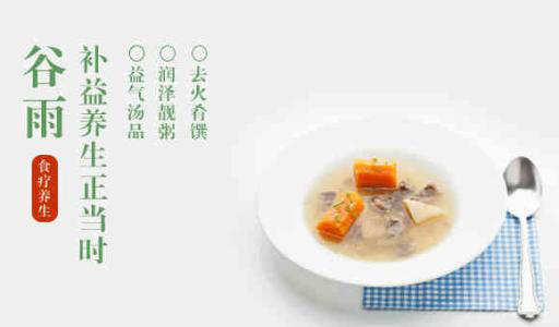 谷雨是春夏相交的节气,春天是肝盛脾弱的时节,但在谷雨前后15天及清明的最后3天中,脾处于旺盛时期,脾胃旺盛,正适宜进补,不过还需注意管住嘴,以清淡为主,少油、少盐、少糖,晚间不宜过饱,时值谷雨节气,湿气最重,可适当吃些益气补血、有祛湿之效的食材,如果赤豆、薏仁、山药、冬瓜、海带、鲫鱼、豆芽及黑色谷类等。