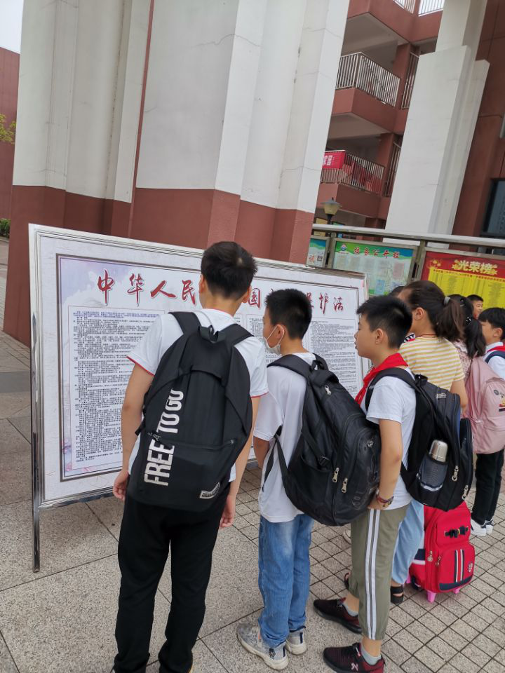 6月12日,展出的当天,县博物馆工作人员将打印好的展板摆放在县第二小学的小学校院内。学生们进入校园后,停留在展板前纷纷驻足观看,一声一句的大声的朗读。表示文物点是不可移动文化,从现在开始,需要你我珍惜、加倍保护文物。