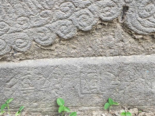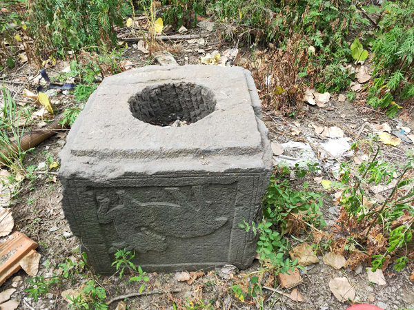 该石刻重约千余斤,四周雕有四组麒麟图案式样,中间有一空洞,石刻边上还有一行铭文,刻有“皖潜信士彭啟国敬 ”字样。在场的文物工作人员认为一件不可多得的古石构建,随即与其沟通并带回了文物管理所。