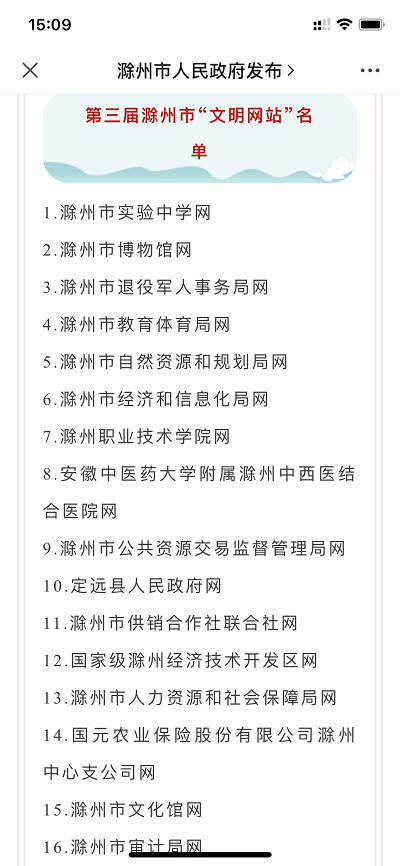 市博物馆获第三届滁州市“文明网站” 荣誉称号