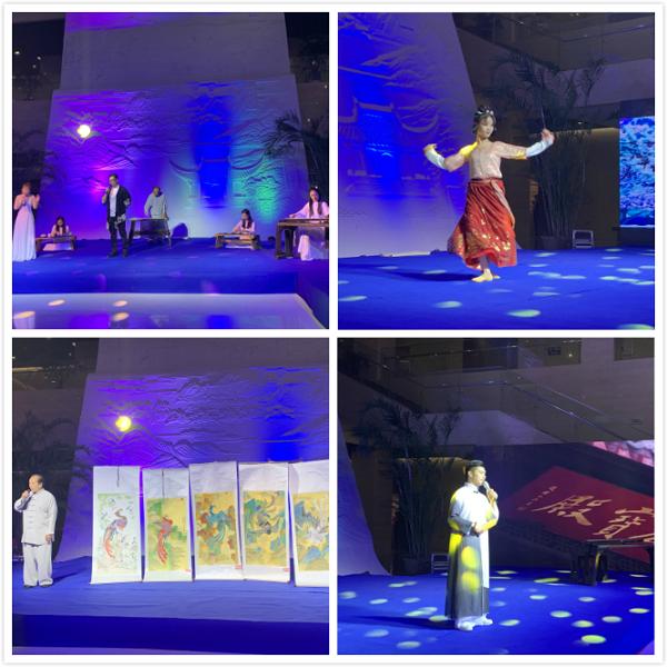 一首《问明月》蜿蜒曲折、婉转流连。古典舞《唐印》风姿俏丽、大气融合。朗诵《醉翁亭记》迂回激荡。《酒狂》放荡不羁、琴声入耳。