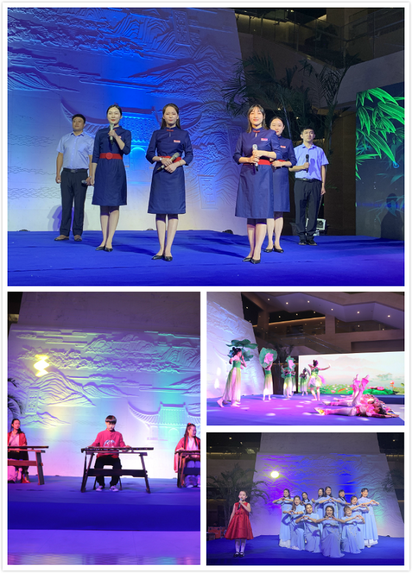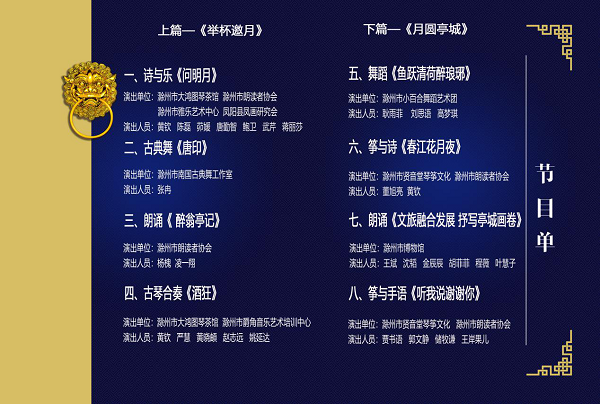 舞蹈《鱼跃清荷醉琅琊》,舞姿灵动、活泼烂漫。《春江花月夜》则上演筝与诗的碰撞,兴起时,笔走龙蛇,一幅极佳书法已跃然纸上。筝与手语《听我说谢谢你》向在抗击新冠疫情中贡献力量的“逆行者”们致敬。值得一提的是《文旅融合发展 抒写亭城画卷》的朗诵,声情并茂地讲述文旅发展的壮阔历程,铿锵有力的话语描绘出滁州腾飞的蓝图,这是文旅人的心声,更是亭城人的期盼。
