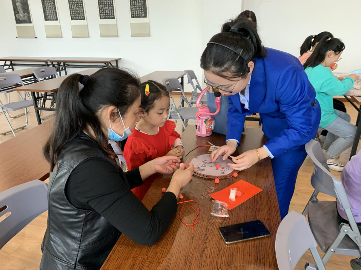 活动中,工作人员通过PPT向大家讲解“霜降”的相关文化知识,并详细介绍制作吊饰的步骤。同学们全神贯注地聆听老师的讲解,积极举手展示自己。在工作人员的协助下,孩子们做成了一件件寓意“事事如意”的柿子挂饰。