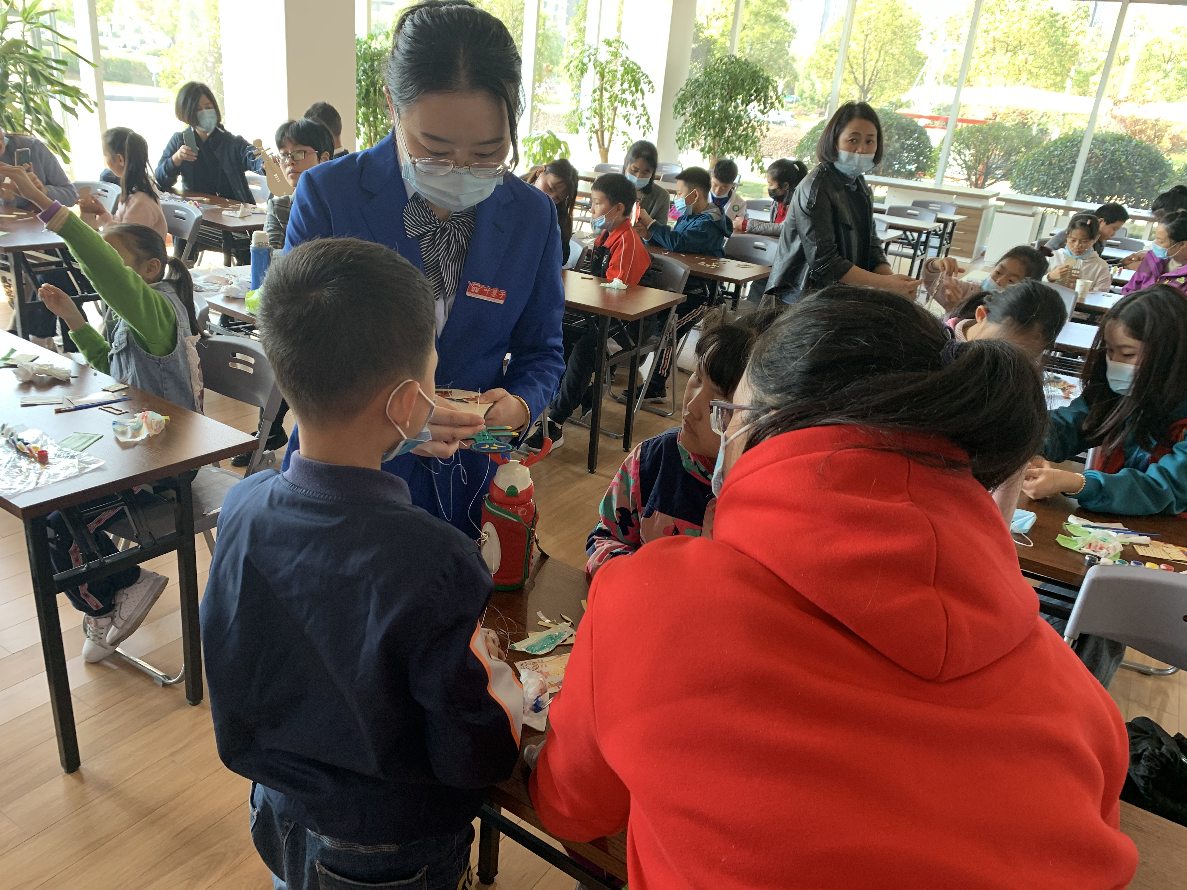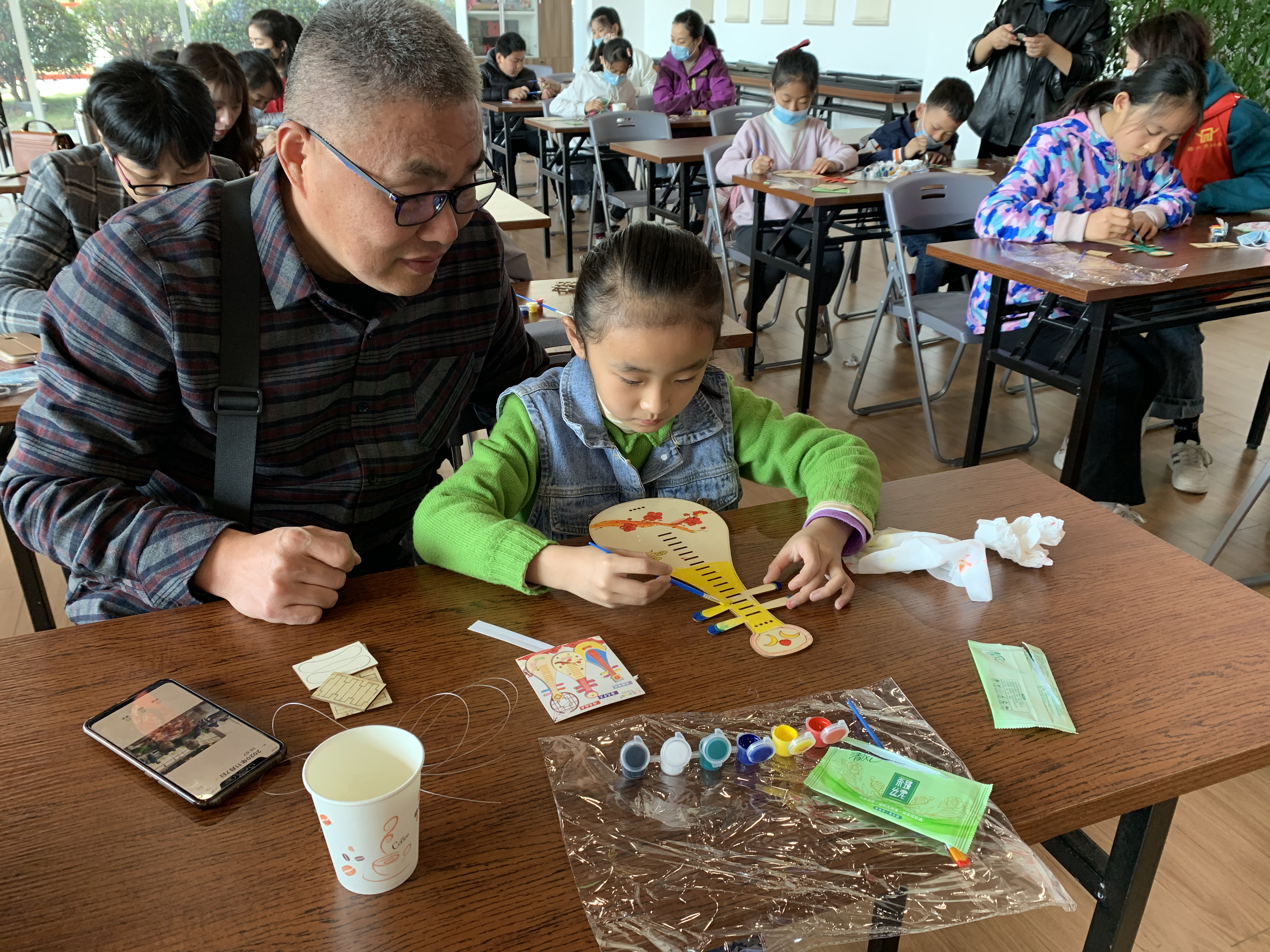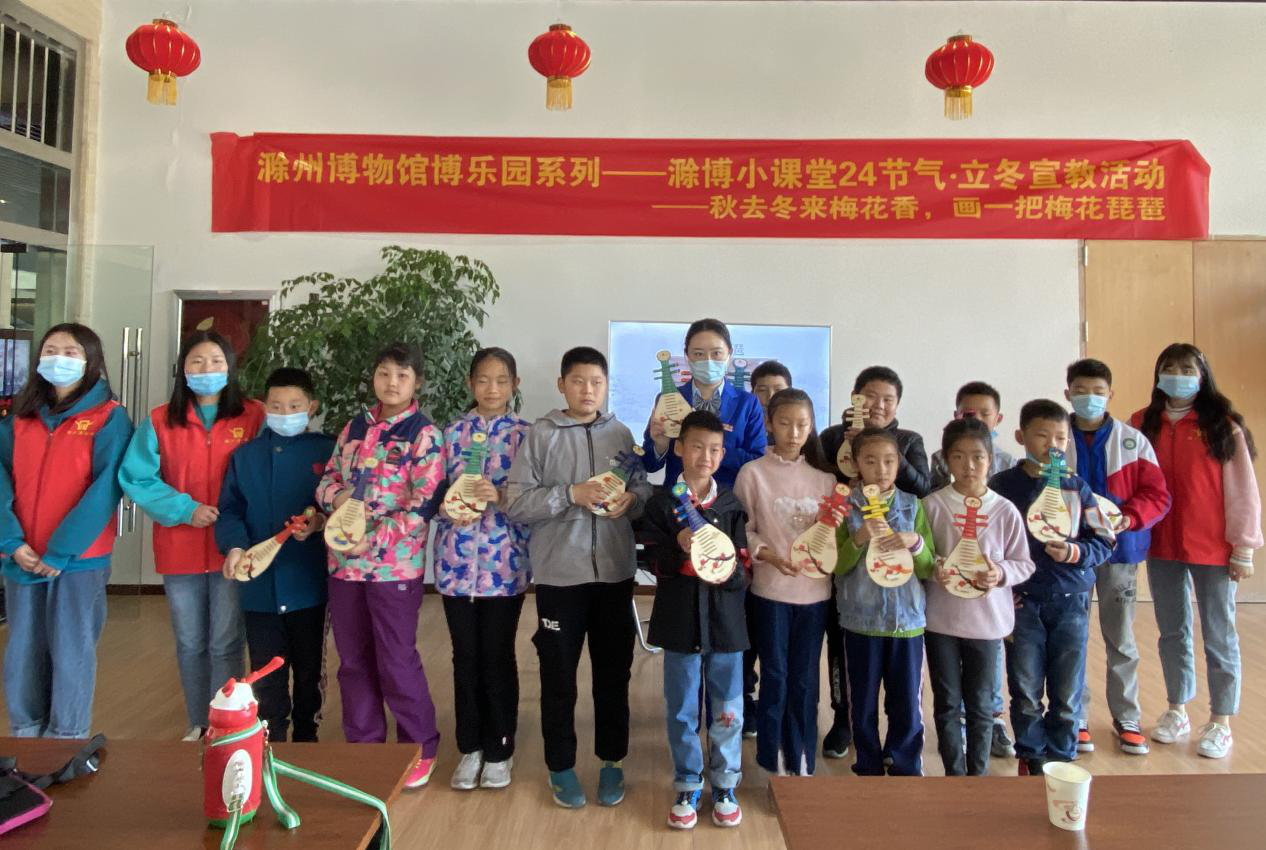 活动中,讲解员老师根据孩子们的年龄特点,用看PPT讲故事的方式,带孩子们观察立冬的天气变化,让孩子们知道立冬是一个怎样的节气,有着怎样的习俗,同学们全神贯注地聆听老师的讲解,积极举手展示自己。最后在工作人员的指导下孩子们和家长亲自动手做成了一把把有立冬特色的梅花琵琶。